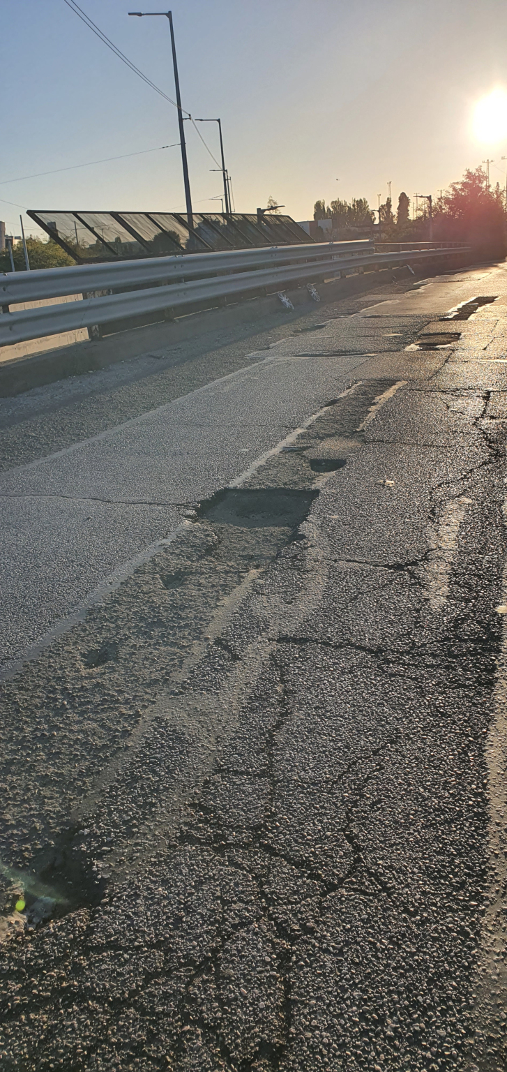 A Könyves Kálmán kőrút Külső-Mester utca felé lévő lehajtón évek óta rengeteg mély kátyú van