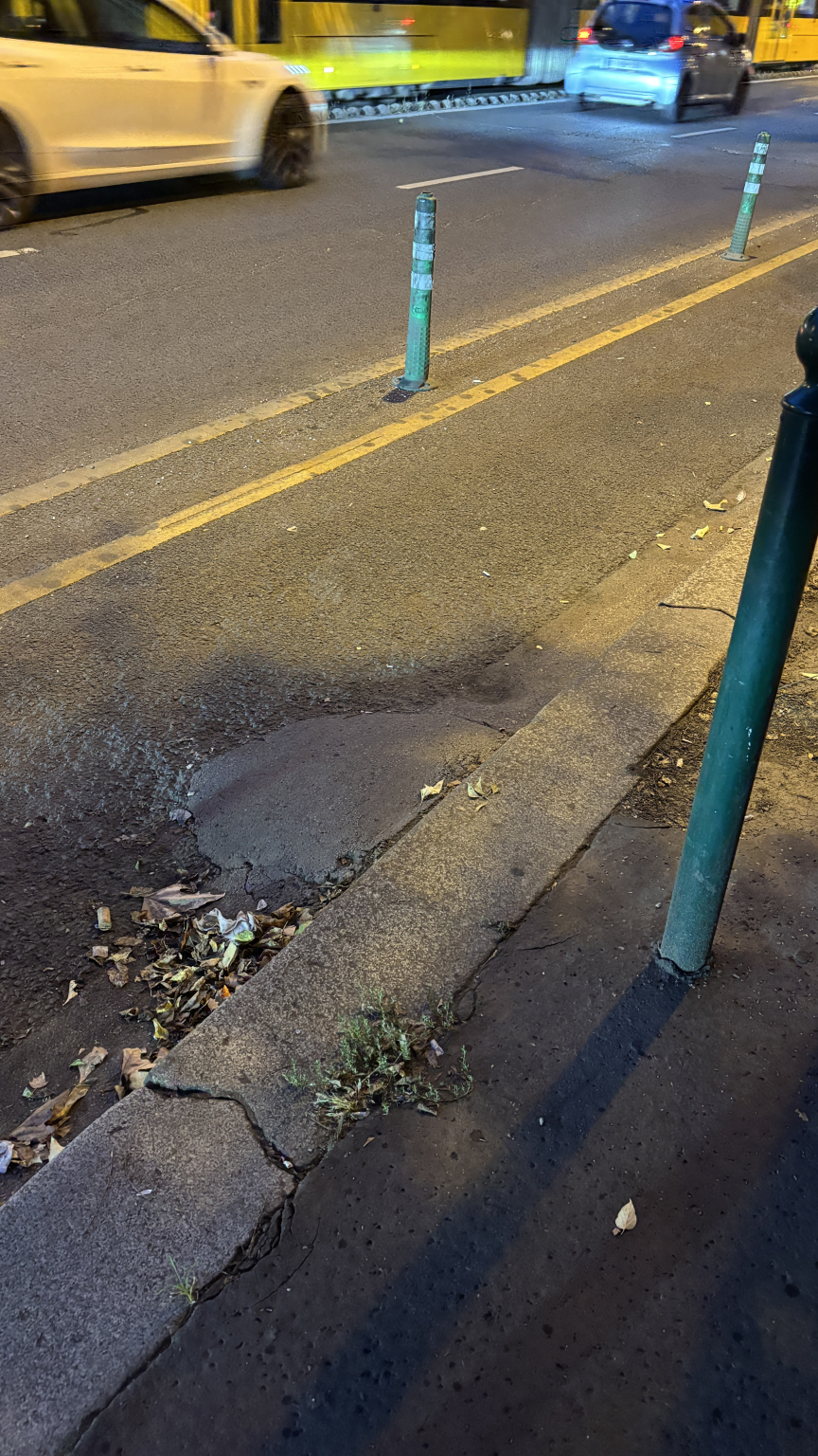 A kerékpárúton van egy feltehetően illegálisan odaöntött beton bucka / rögtönzött rámpa.