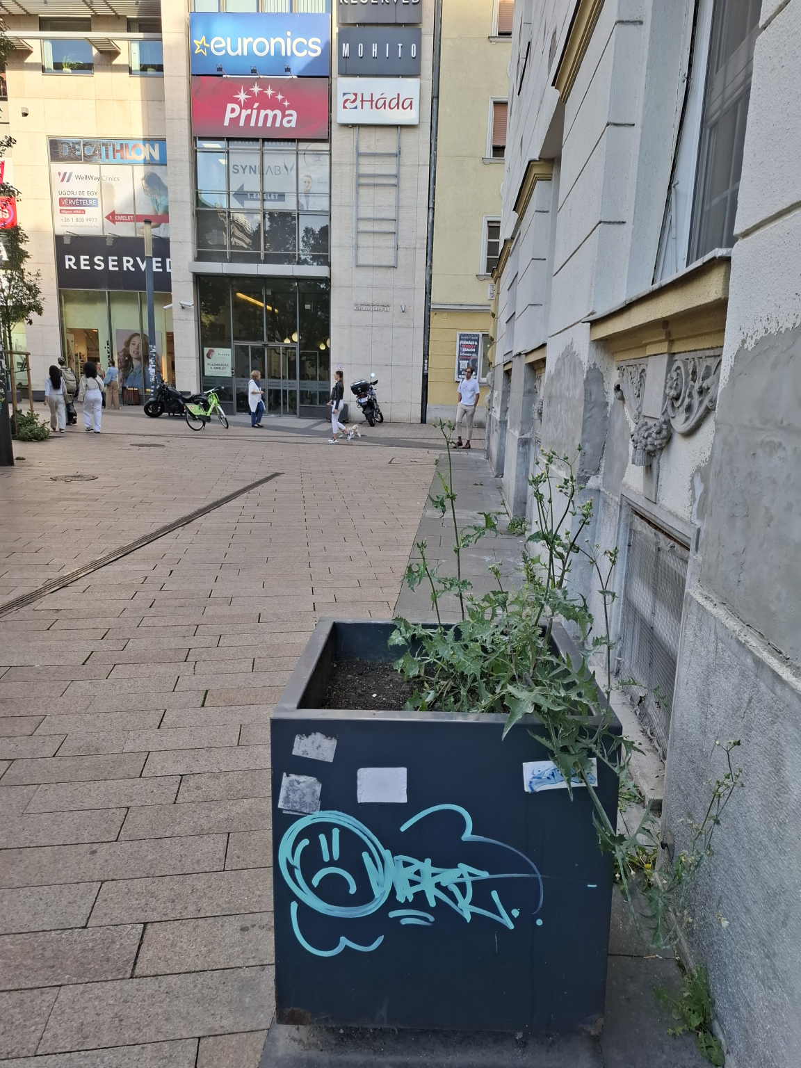 A Corvin közben továbbra is több gazos virágláda van, mindenféle ültetett növény helyett.