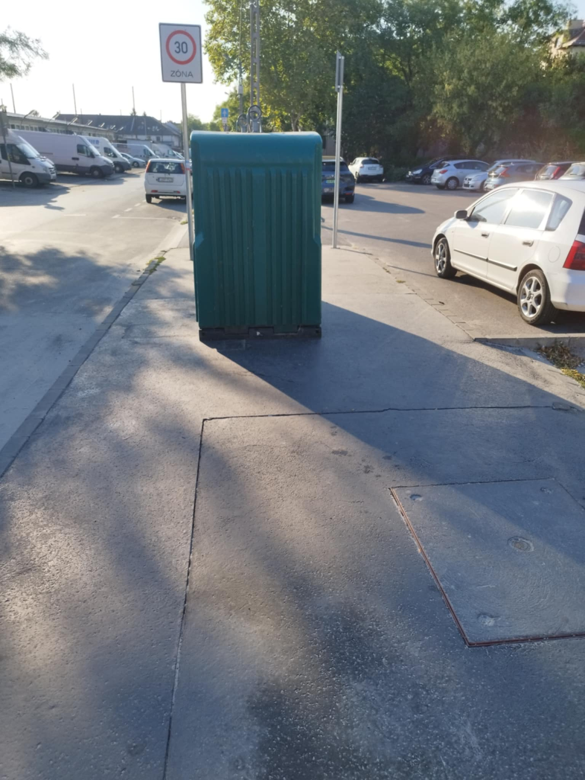 Járda közepén lévő szelektív gyűjtő