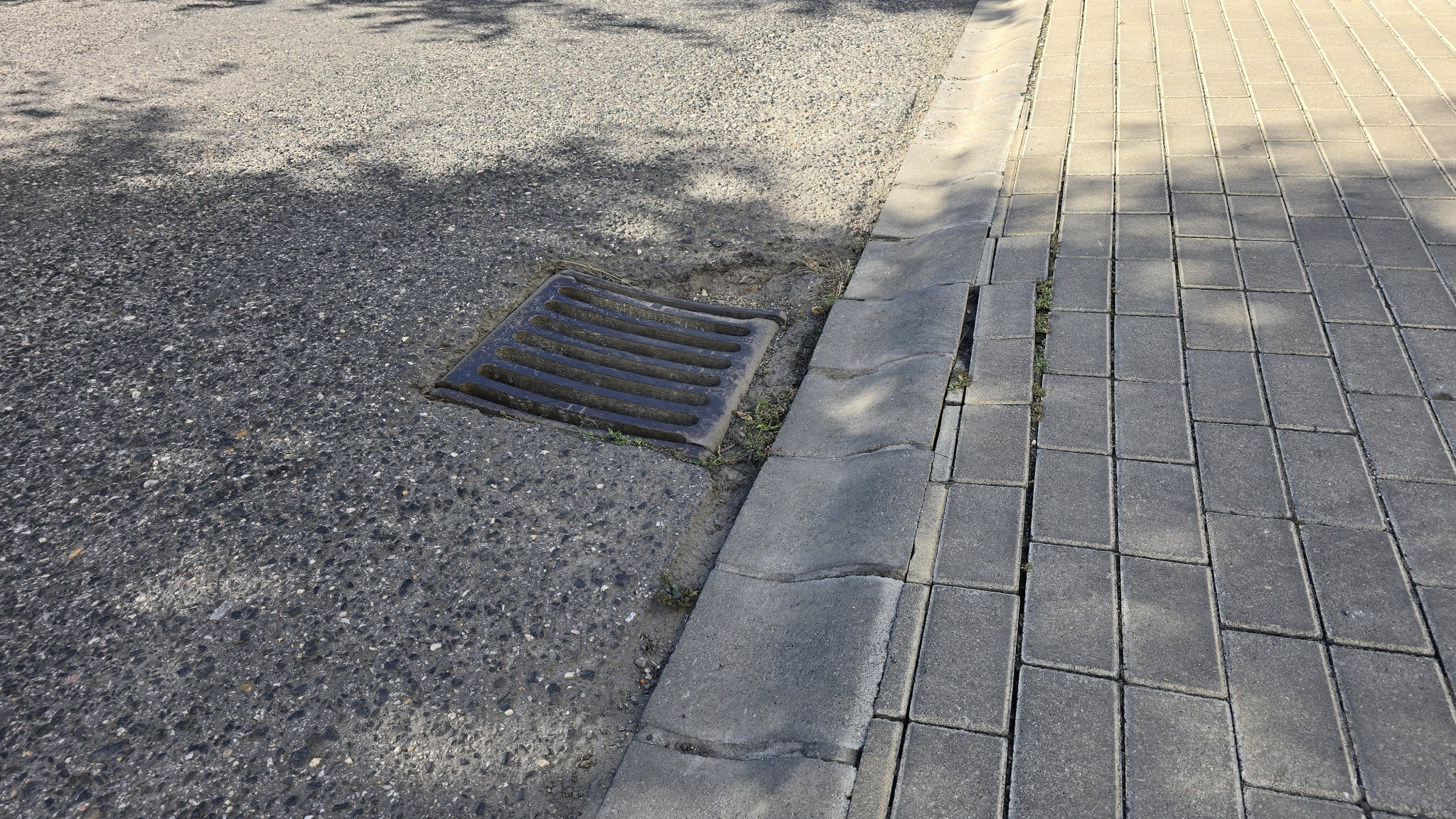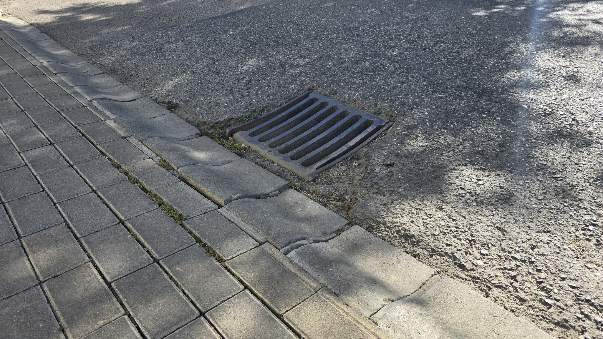 A garázsbejáró előtt lévő csatornafedő mélyen be van sülyedve ami megnehezíti a ki és beállást és sérti a gumi oldalát is.