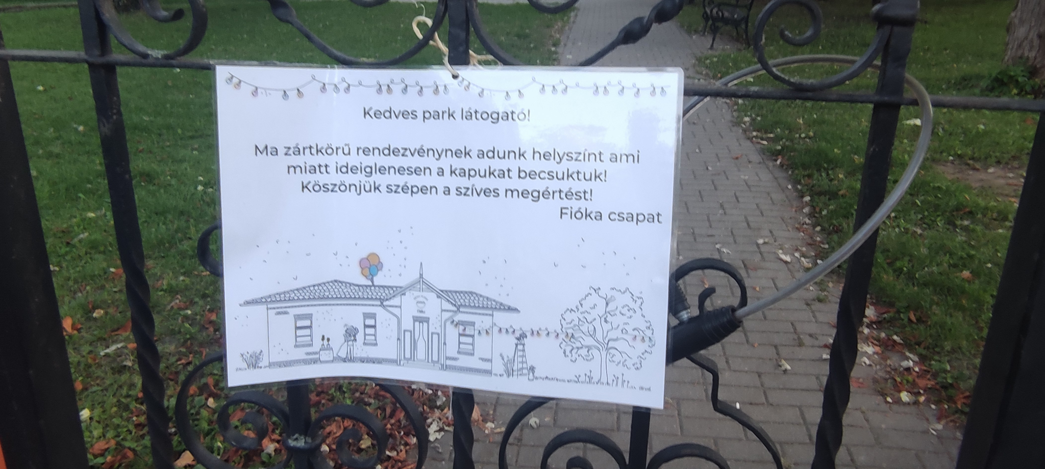 A Mini Városmajor parkban található Fióka étterem zártkörű rendezvényt (esküvőt) tart a közparkban (2025.09.19.), ezalatt megtévesztő feliratokat helyez el a bejáratnál, a park nyitvatartási ideje alatt a kapukat becsukják. A Fióka étterem munkatársa szerint a zártkörű rendezvény idejére a parkot nem bérlik, ők csak " megkérik " az embereket, hogy ne használják a közparkot. A kapukat pedig bizonyára csak a huzat miatt tartják ideiglenesen csukva... Szerintem a Fióka se nézze az embereket madárnak, ez nem más mint jogosulatan közterület használat.
