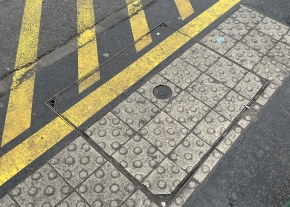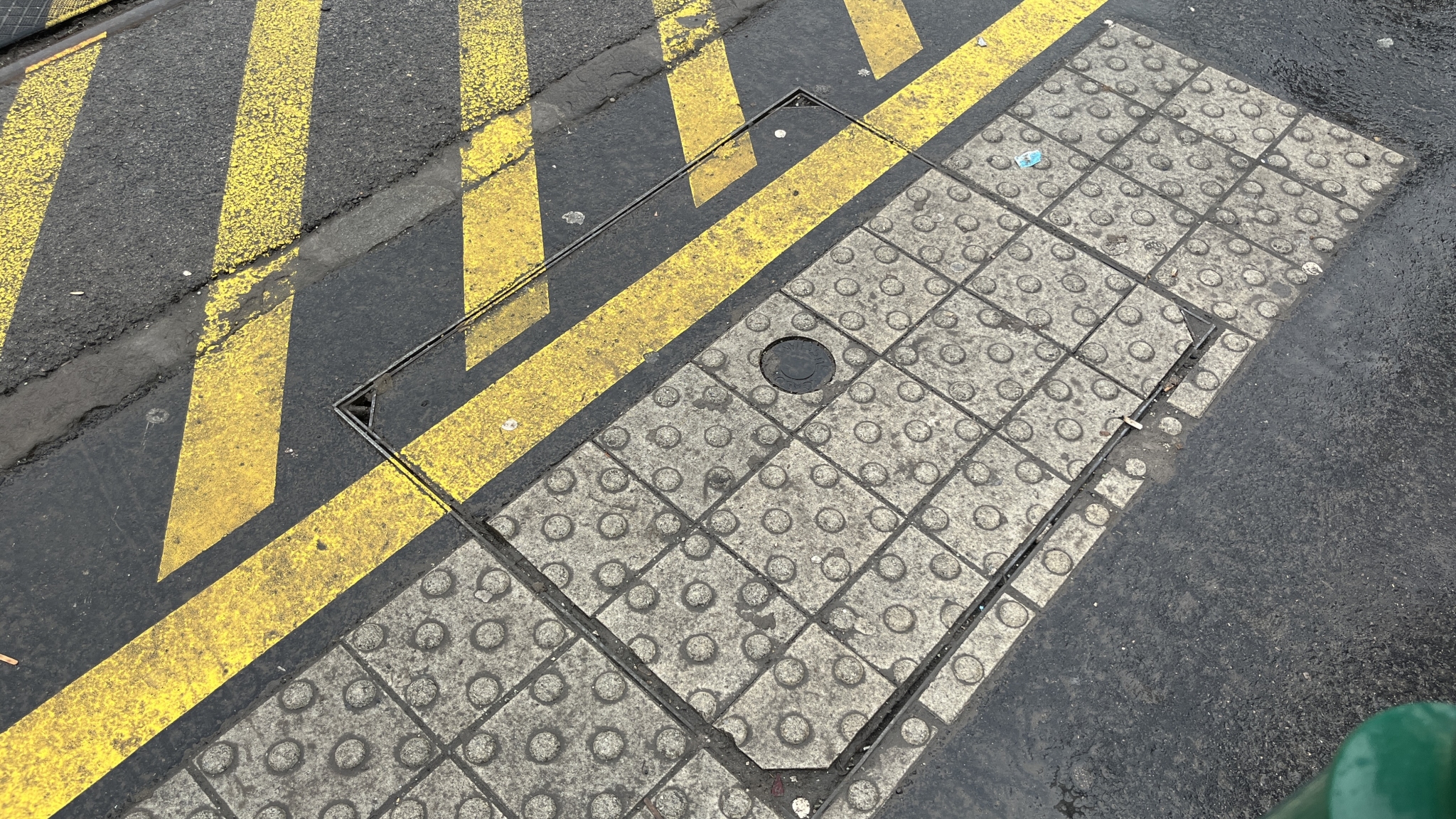 Az Örs vezér terén kialakított új zebra zuglói oldalán lévő forgalomirányítási fedlapról hiányzik a dugó.