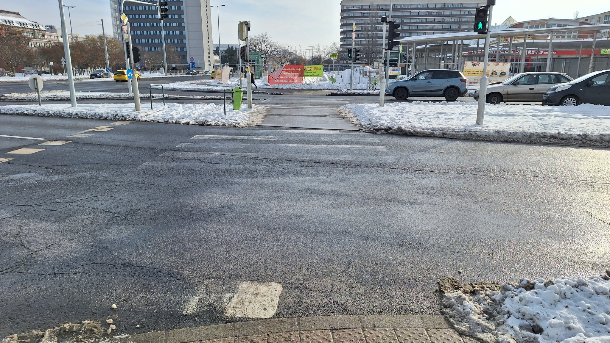 Az Ecseri út M-nél lekopott az Ecseri utat keresztező zebra.