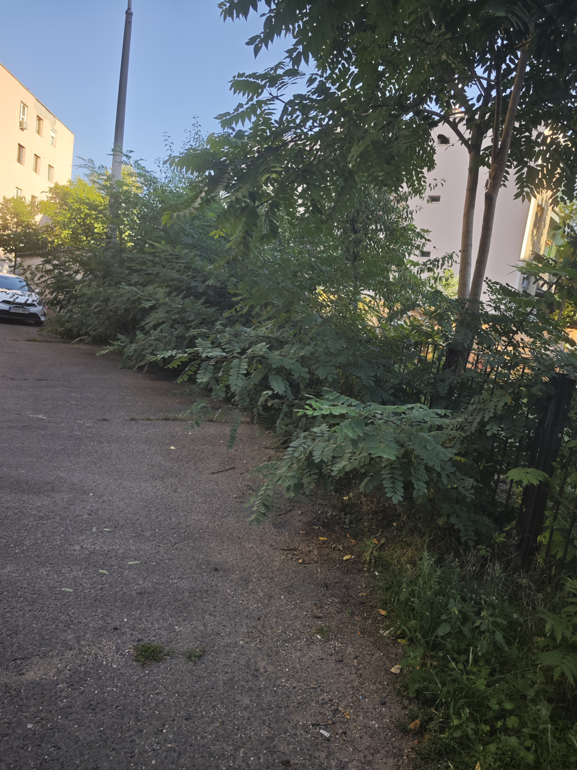 A járda nagy mértékben belóg a nővényzet.