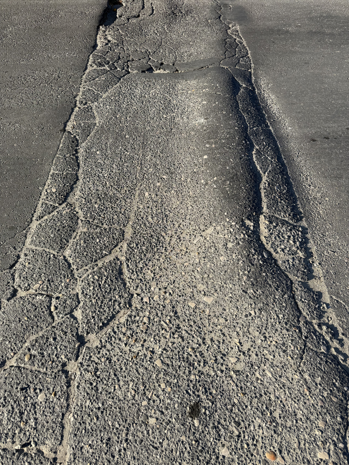 Felgyűrődőtt, kátyús út, ami a végén ugratóvá válik.