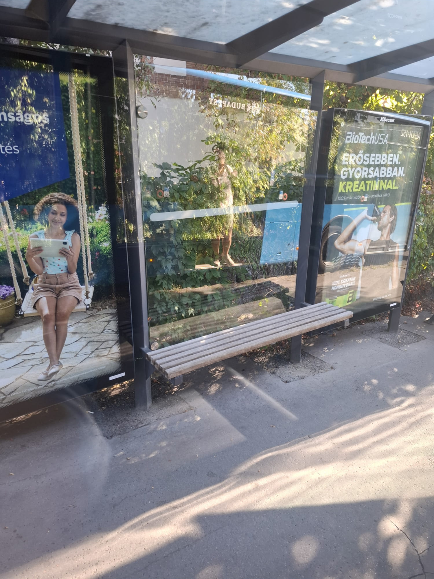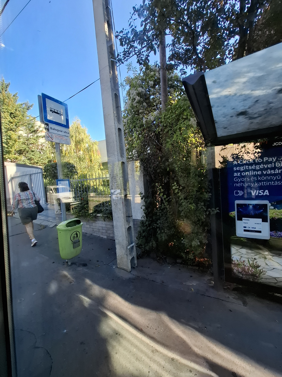 A Baligvár utcai megállóban teljesen lekopott a festés a padról.
