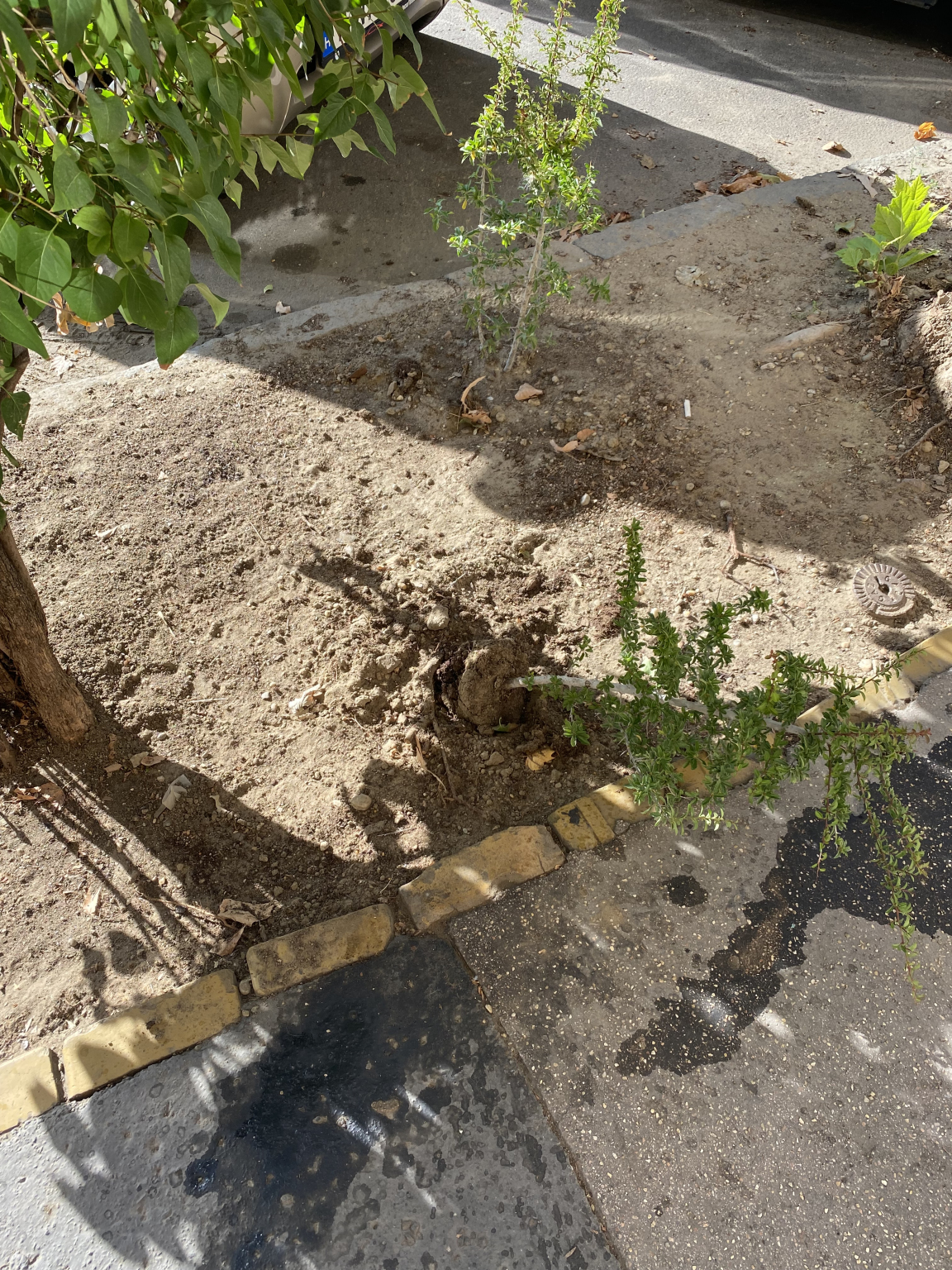 Az onkormanyzat ket ev alatt masodjara jatssza ezt el, hogy kikuldi a fenntarto embereit, asnak egy cserepnyi lyukat, tenyleg nem nagyobbat, bele teszik a novenyt es ennyit. Legutobb a harmada pusztult ki, most azokat potoltak, es mar kezdenek kipusztulni, pedig kb egy hete volt.