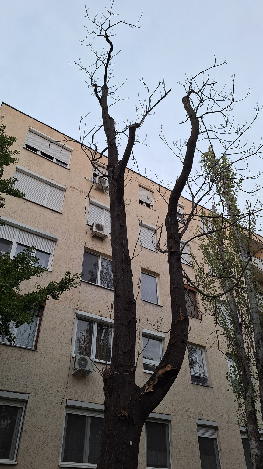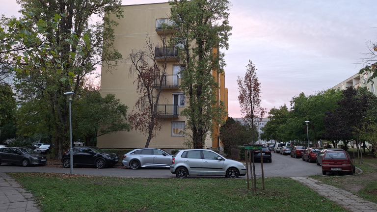 Az Ecseri út 4. belső, lakótelep felőli végénél van három kiszáradt fa. Közvetlenül az épület mellett egy, ezen nem találtam fakataszteri számot, kicsit odébb egy kiszáradt facsemete, a száma: 15023; és tőlük nem messze, a Dési Huber utca 3. hátsó oldalánál is áll egy, a száma: 12907.