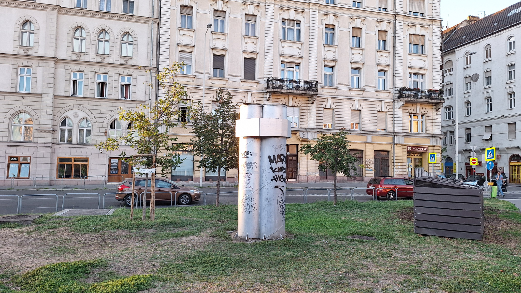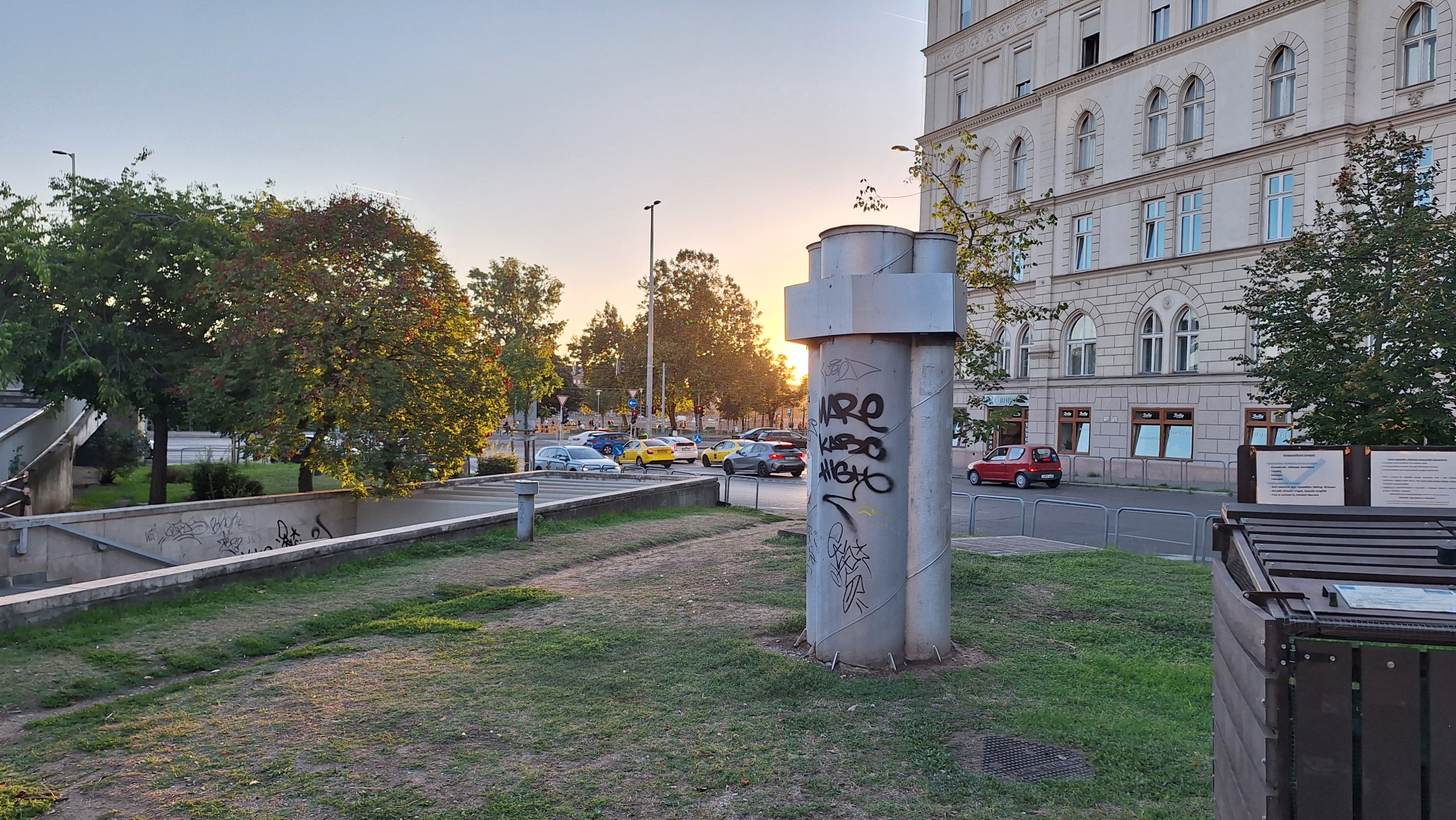 A Boráros téren a ,,B" kijárat közelében lévő szellőző szét van firkálva.