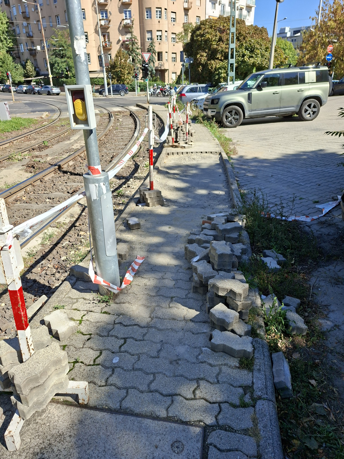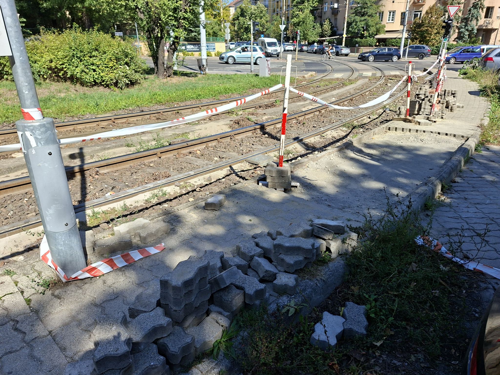 Az Apor Vilmos téren a Böszörményi őt felé haladó villamospálya kábeleit javították augusztus végén. Ehhez a járdát megbontották. Majd a munka végeztével betemették a gödröt, lebetonozták, de a térköveket már nem rakták vissza. Itt nagyon keskeny a járda, a megállóból lefelé gyalogosan csak a parkolón keresztül lehet kikerülni ezt a részt, autók között bukdácsolva.