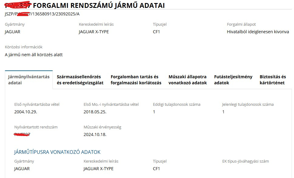 Lejárt műszakis, forgalomból kivont Jaguár, Pesterzsébet Vörösmarty utca.
