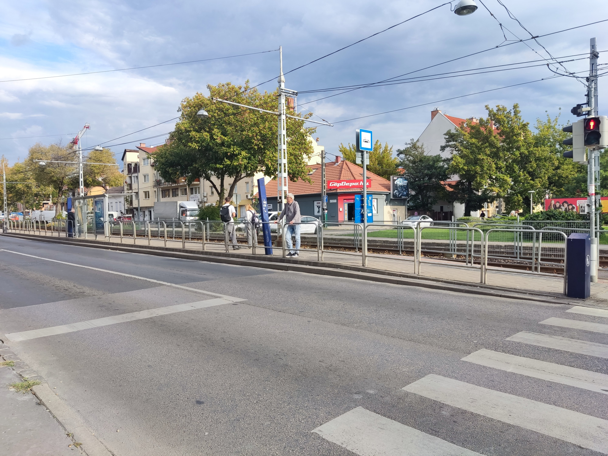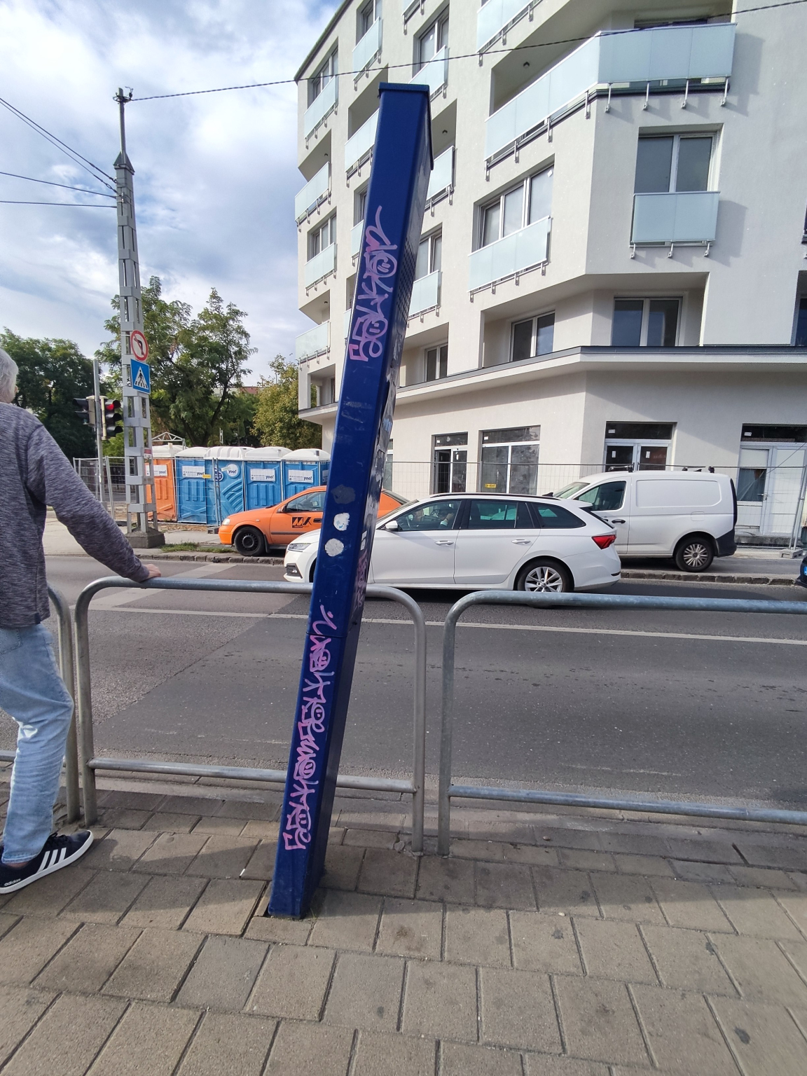 Kidőlő oszlop a megállóban (BKK?) Egy kábelkötegelő tartja?