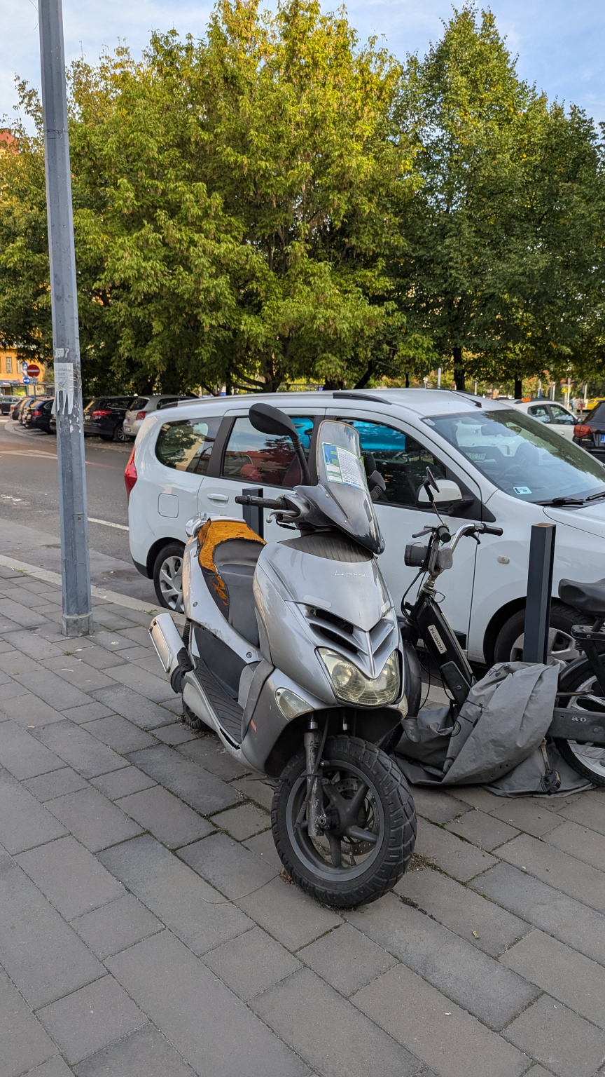 Kérjük, hogy végre valahára szállítsák el a fotón látható robogót, mert már az Önök által kihelyezett értesítő szövege is elkopott, a tulajdonosa azonban a füle botját sem mozgatja, hogy a járművét eltakarítsa.