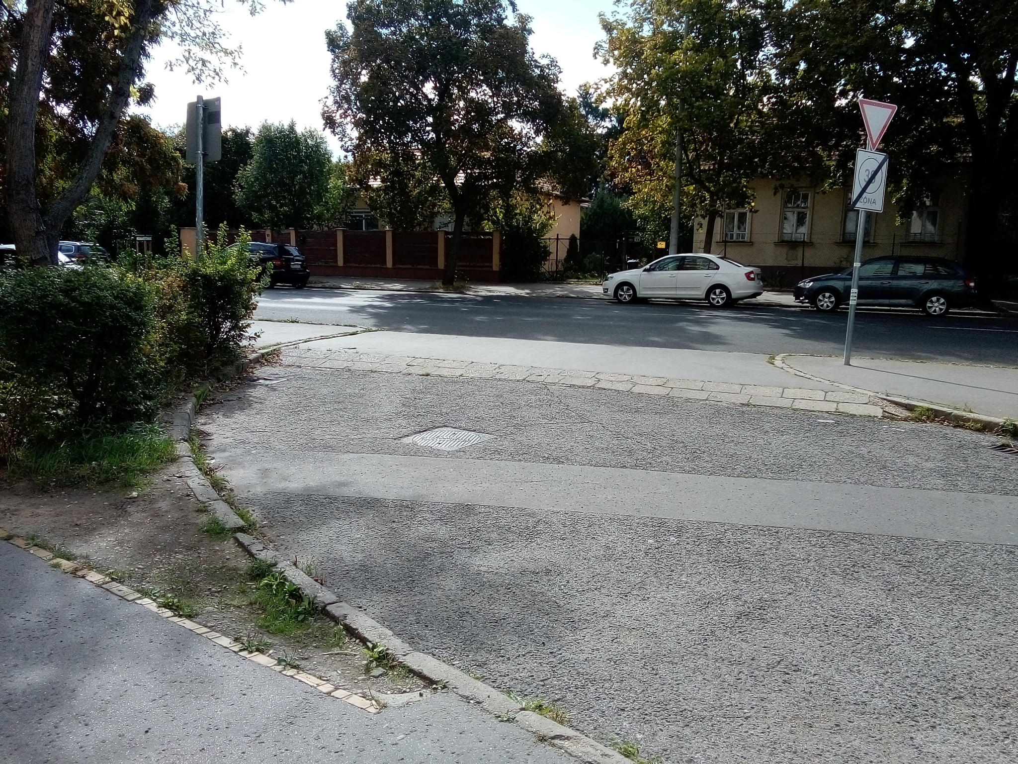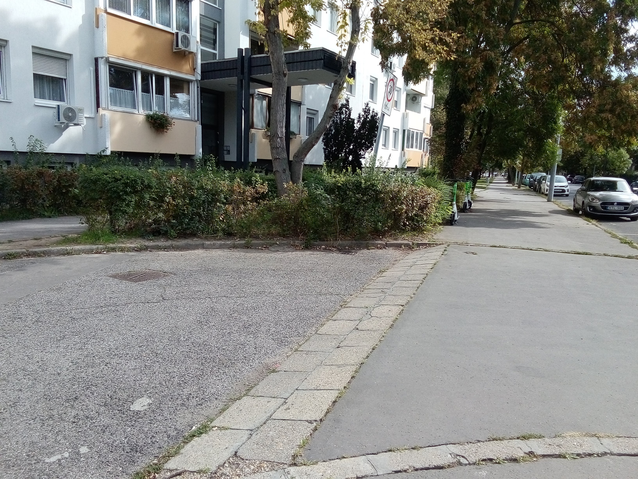A 42. házszám előtti háromszög alakú zöldterület helyreállítását és védelmét kérem.