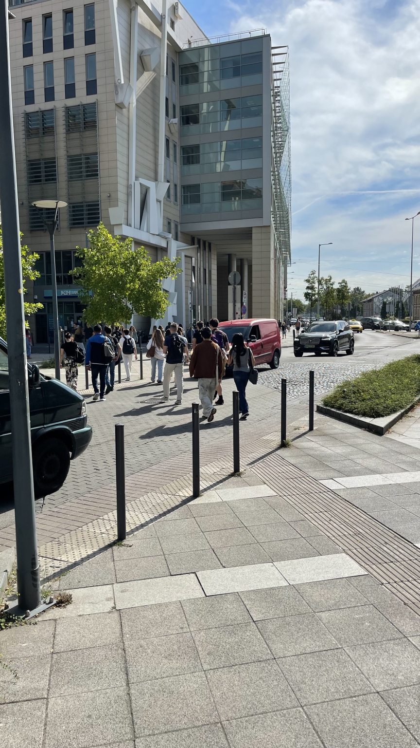 Veszélyes gyalogos forgalom a Corvinus épületei között