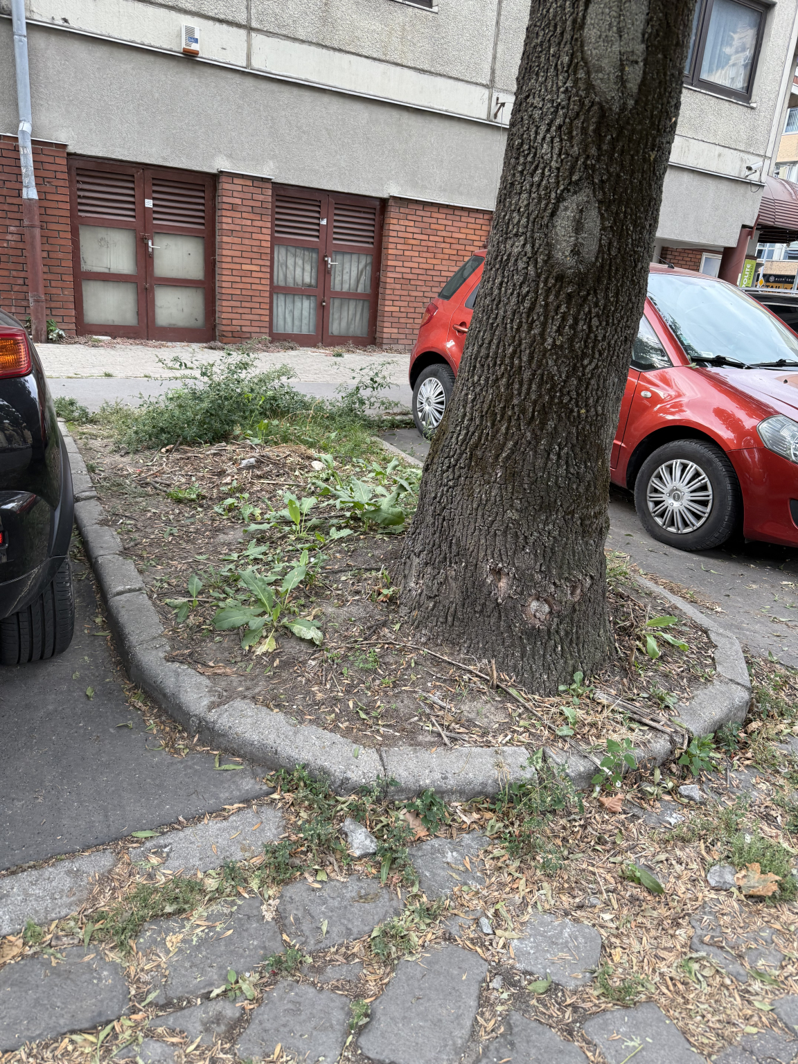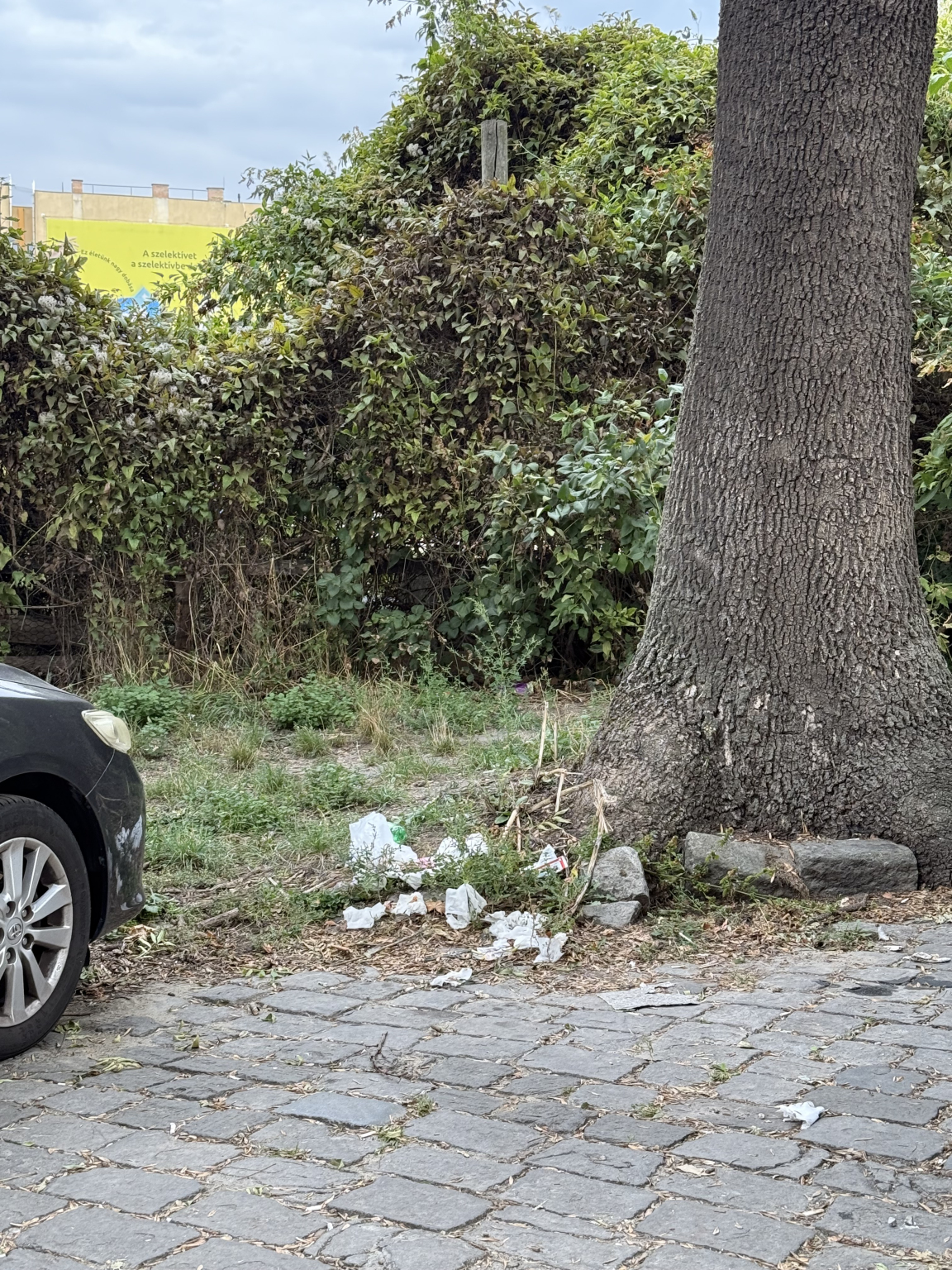 Ahogy a gyerekek mennek óvodába, a parkoló irányából borzasztó állapotok várják őket magában a parkolóban és az elhagyott épület mellett végig az óvoda kapujáig: por, rengeteg szemét, csikkek, derékig érő gyom, ápolatlan növények, omladozó kerítés. Elég borzasztó, hogy a 3. kerület egy központi részén a gyerekek ezt látják minden nap az amúgy takaros és rendben tartott óvoda környékén. Az elhagyatott ház is biztos sokat ront a helyzeten, de nem indok a környezetében található állapotokra.