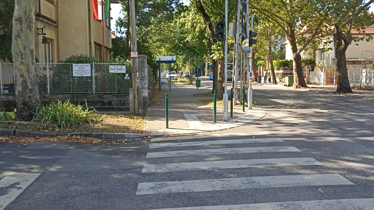 Kiégett a gyalogos, zöld jelzőlámpa az újpesti Vécsey és Leiningen utca kereszteződésében