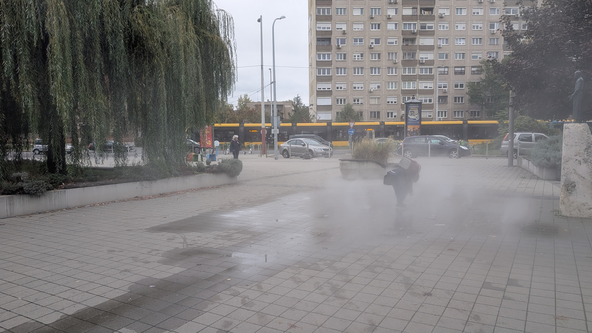 Vajon mi a logika abban, hogy a nyári hőségben nem ment a Vörösvári úti Spar előtt a párásító, most egy esős szeptemberi napon viszont igen?