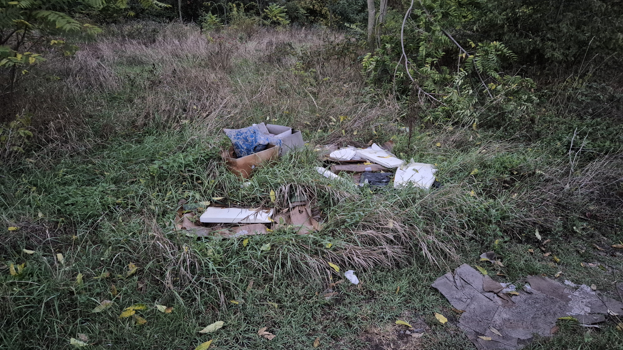 Jelentős mennyiségű, vegyes hulladékkal találkoztam a 9. kerület Hídépítő utca / Dalai Láma út és a Soroksári Duna közti bokros zöldterületen, a Big Print Kft. épülete magasságában.