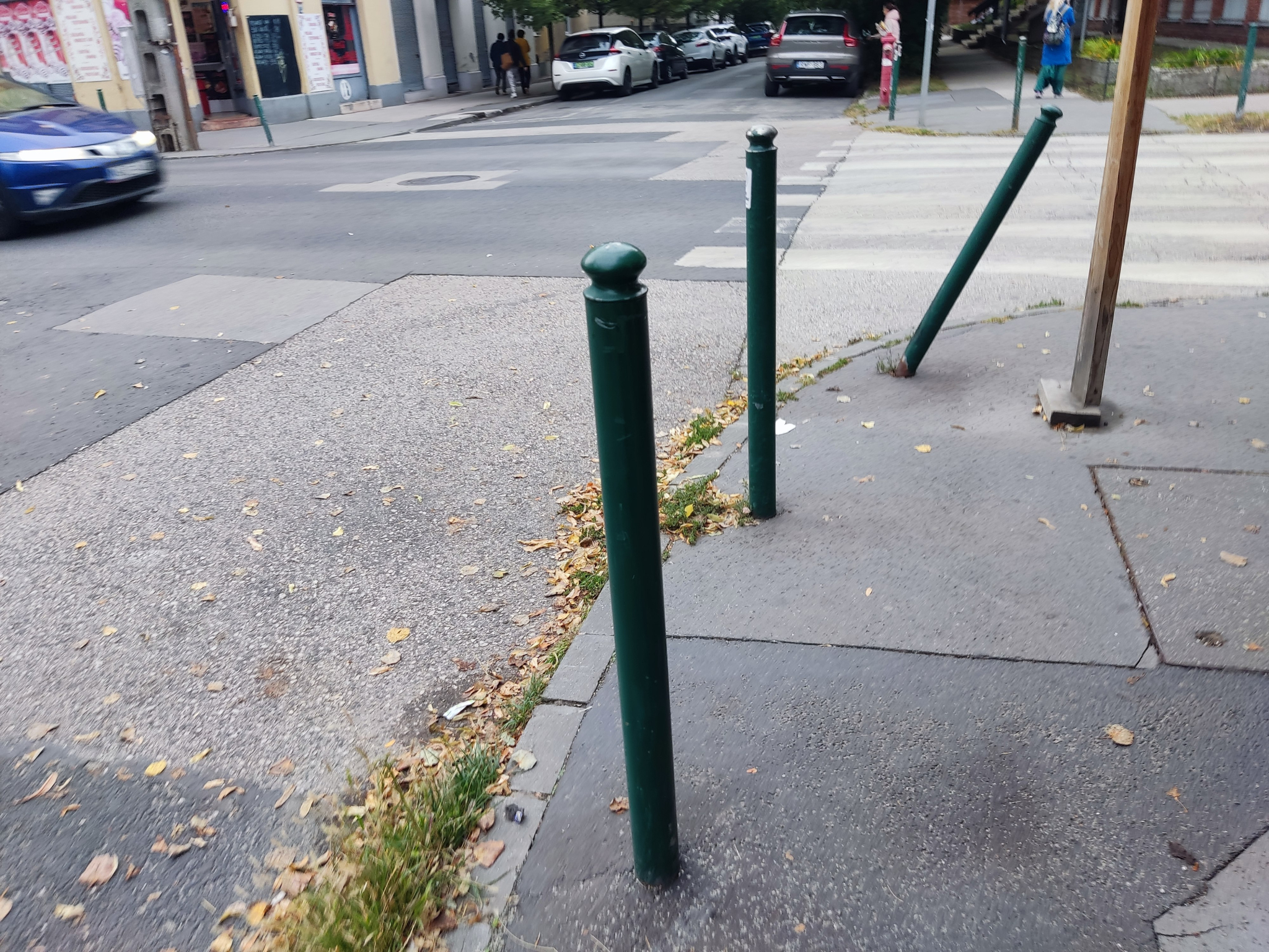 Kidöntött poller akadályozza a gyalogos forgalmat