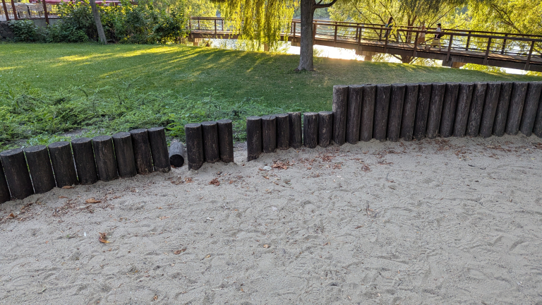 Tavaly és idén is ugyanilyen állapotban volt a Kopaszi-gáti játszótér rönk és kötél kerítése. Számos helyen elkorhadt, kidőlt a fa, a kenderkötél pedig foszlik. Kérem, legyenek szívesek felújítani. Köszönjük!