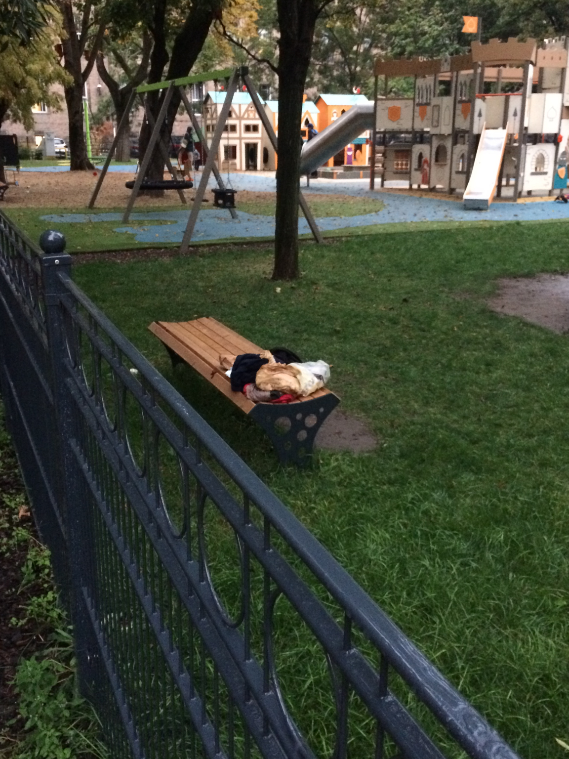 Szemét a játszótéri padon