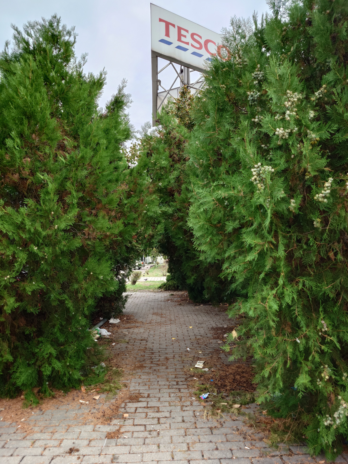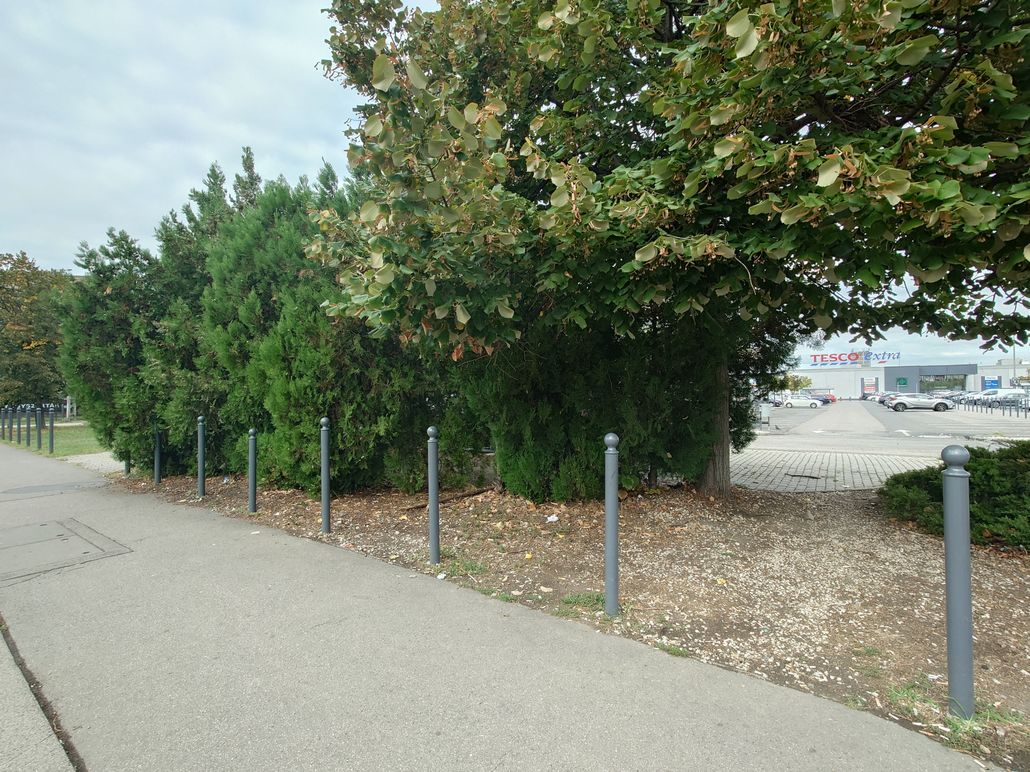 A Fogarasi úti Tesco és a troli/busz megálló közötti zöld sávban a tuják közötti terület nyilvános wc-ként és szemétlerakóként funkcionál. A megállóban átható szag érezhető, az ott várakozók látják, hallják a történéseket (gyerekek is). Kérem az illetékesek szíves intézkedését.