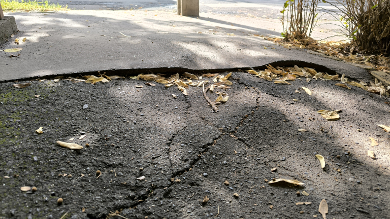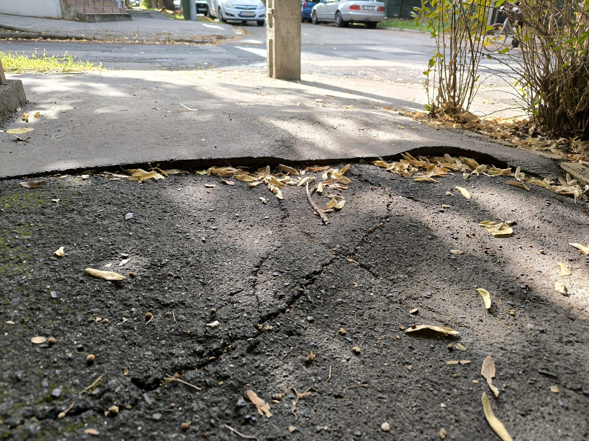 Kispesten a Zalaegerszeg utca és Árpád utca sarkán az Árpád utca páros oldalán a fák gyökerei botlás veszélyessé tették a járdát.