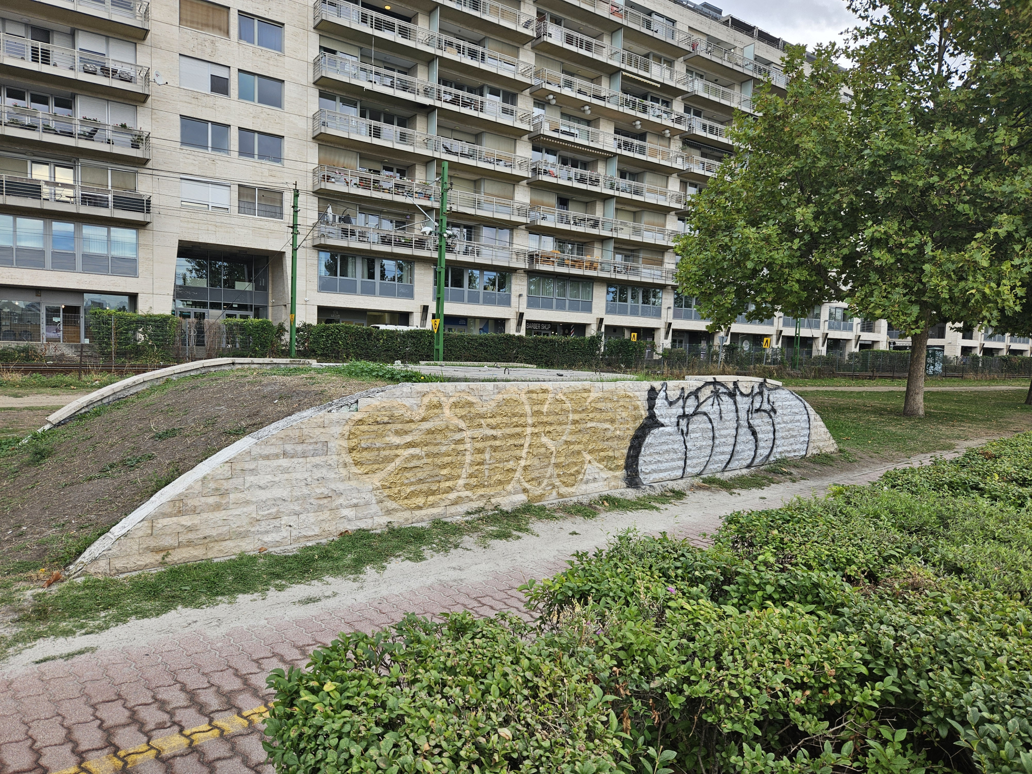 Egy graffiti található a Gizella sétányon Boráros tér H mellett.