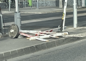 Egy sérült elektromos oszlop évek óta a járdasziget közepén van a H5 HÉV Békásmegyer felé tartó vonalán a csillaghegyi megállóban, egyre rosszabb állapotban. Nem csak a gyalogosforgalmat akadályozza, de balesetveszélyes is.