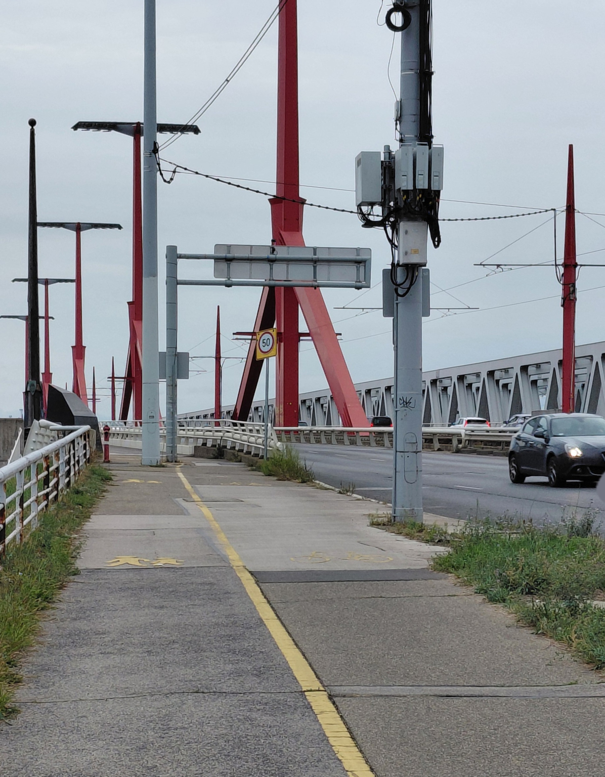 A Lágymányosi híd Budai felé vezető oldalán, a jelzett helyen két táblát kint felejtettek, amik már nem a menetiránynak megfelelően állnak.