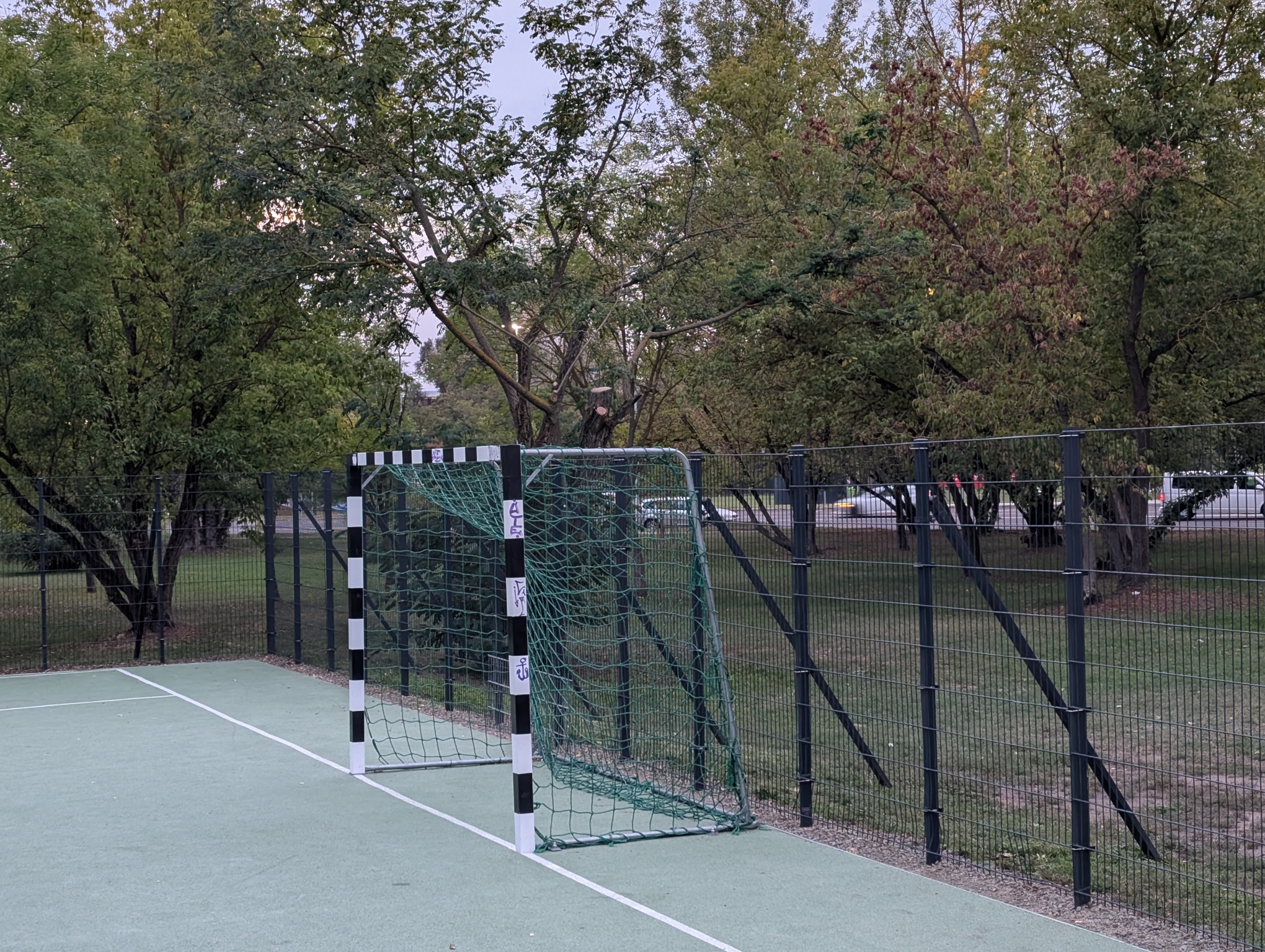 A Halassy uszoda melletti focipályán a kapuk mögött a kerítés fölött hiányzik a háló ami megfogná a magasra rúgott labdákat. Összehasonlításképpen a bőröndös utcai kosár és focipályánál körben végig lett háló is telepítve. Ha a Halassy uszoda melletti focipályán is lenne háló a kerítés fölött, sokkal kevesebb játékmegszakítással, nyugodtabban lehetne játszani.