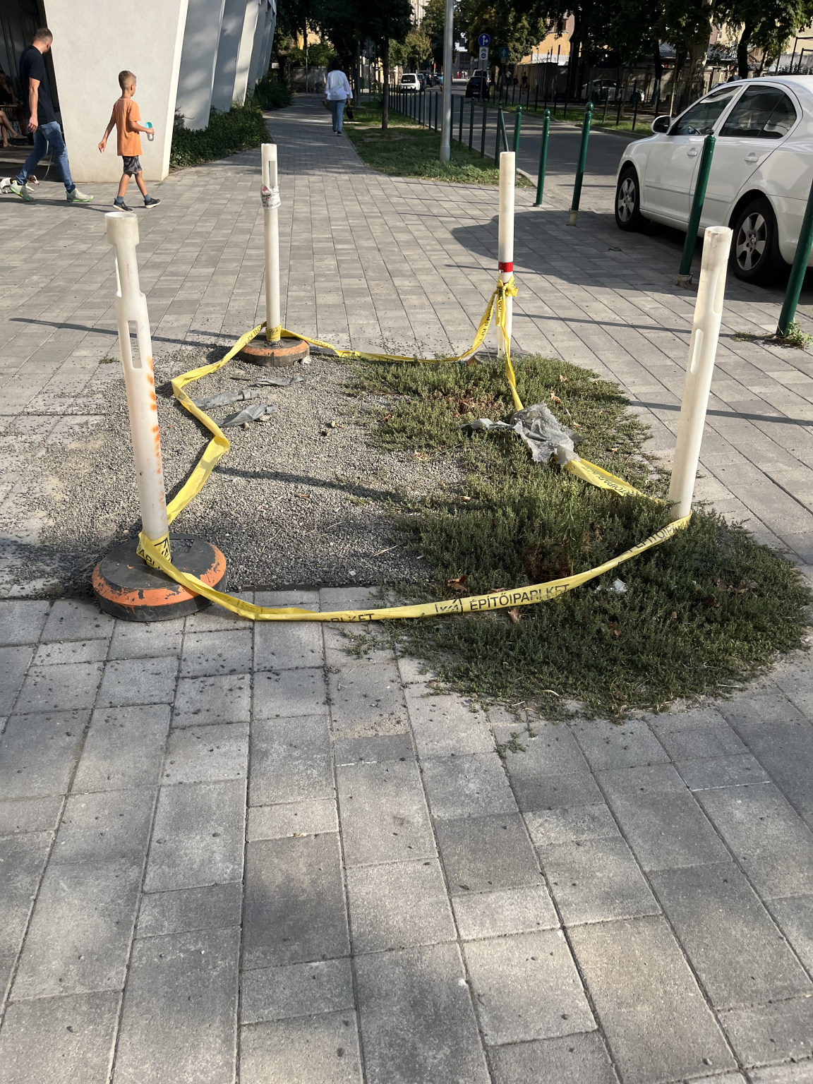 Taksony utcában hónapok óta árválkodó oszlopok és indokolatlan kő kupac valamint gaz található. Kérem a terület rendezését. Köszönöm.