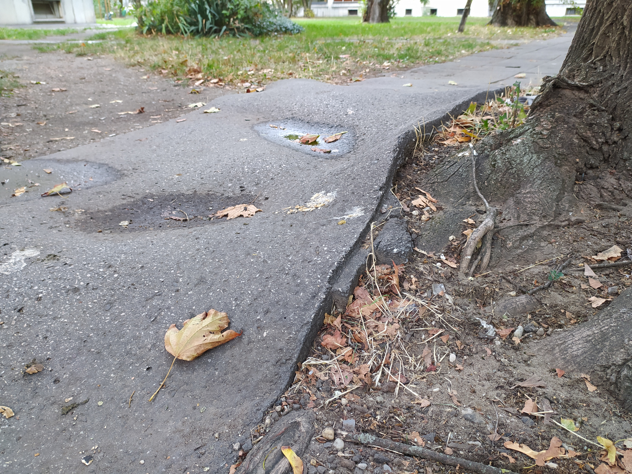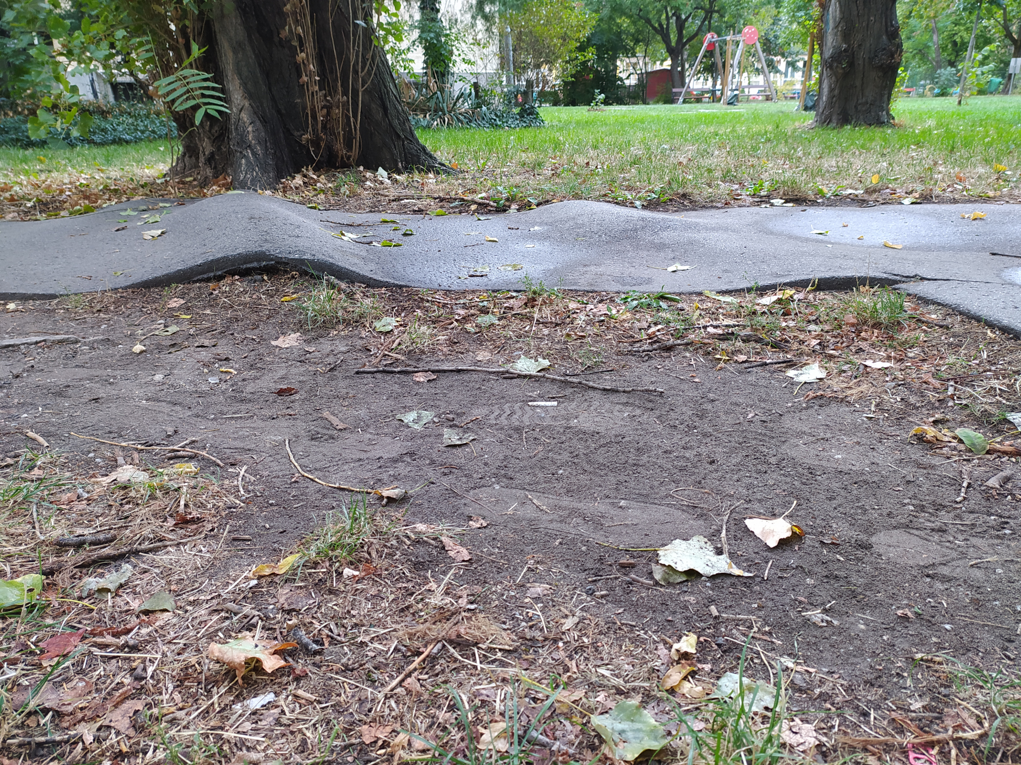 Az Ifjúmunkás utca 6. felől a Dési Huber utca felé vezető kis járdát alaposan felgyűrték a fagyökerek (20 cm magasan), ami kényelmetlen, sőt sötétben balesetveszélyes.