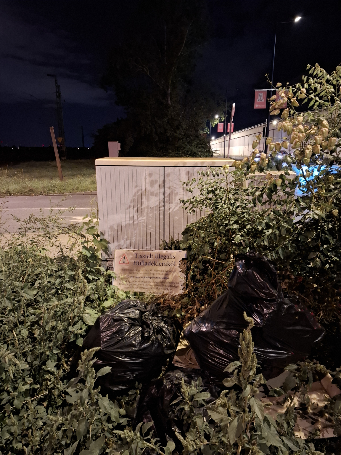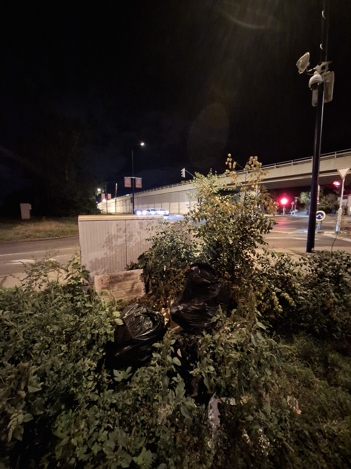 A Honvéd utca szélén a kamera és rilró tábla ellenére 2 nagy zsák szemét van. Mellette a nagy gazt is érdemes lenne megszűntetni, talán kevésbé vonzaná a szemetelőket.
