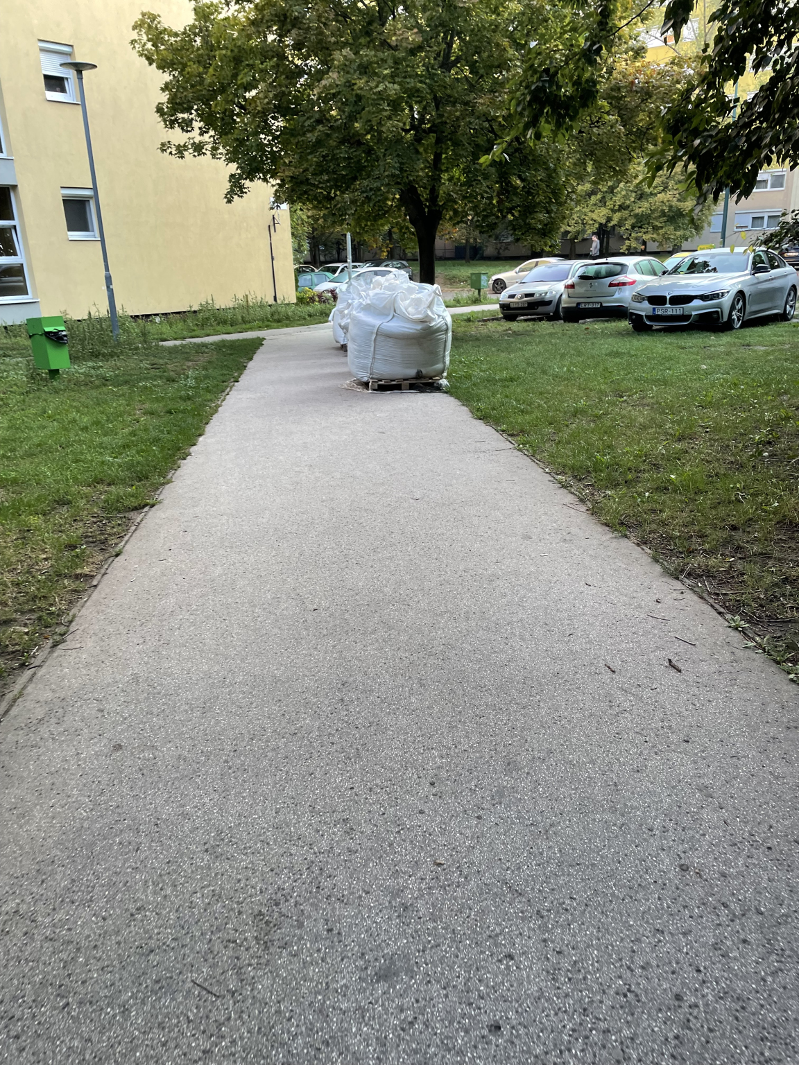 Hónapok óta áll közterületen. Kutyák pisilik szét és páran bele is vágnak késsel, emiatt a járdára hullik a föld.
