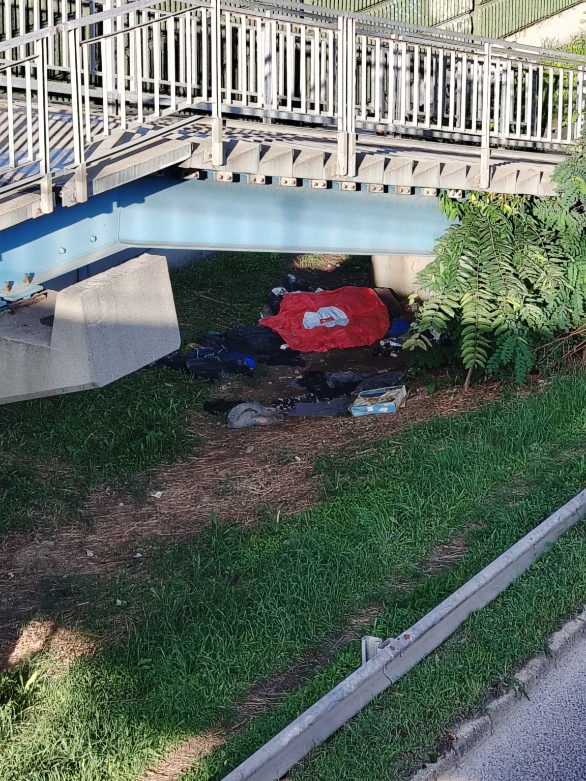 Szokás szerinti szeméthalom a Naszód utca gyalogosfelüljáró alatt.
