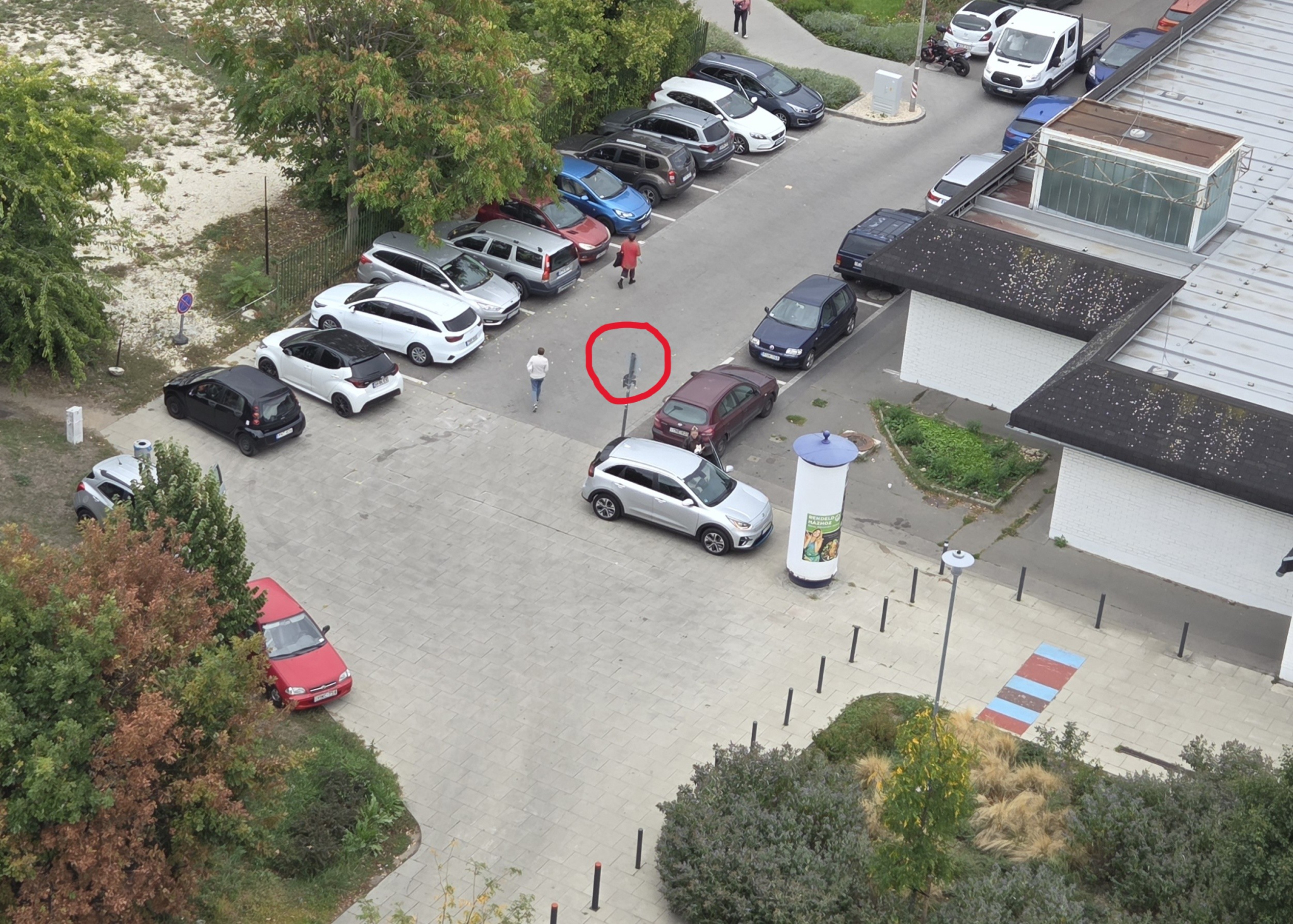 Az egyik képen pedig a Spar-ral szembeni parkolóban a parkolásra ki nem jelölt területen is parkolnak, sokszor még a külön felfestett forgalomtól elzárt területen is, ezzel akadályozva a bekanyarodást. Ez a rész arra szolgálna, ha mindkét irányból érkezik jármű, félre tudjanak húzódni és elférjenek egymás mellett.