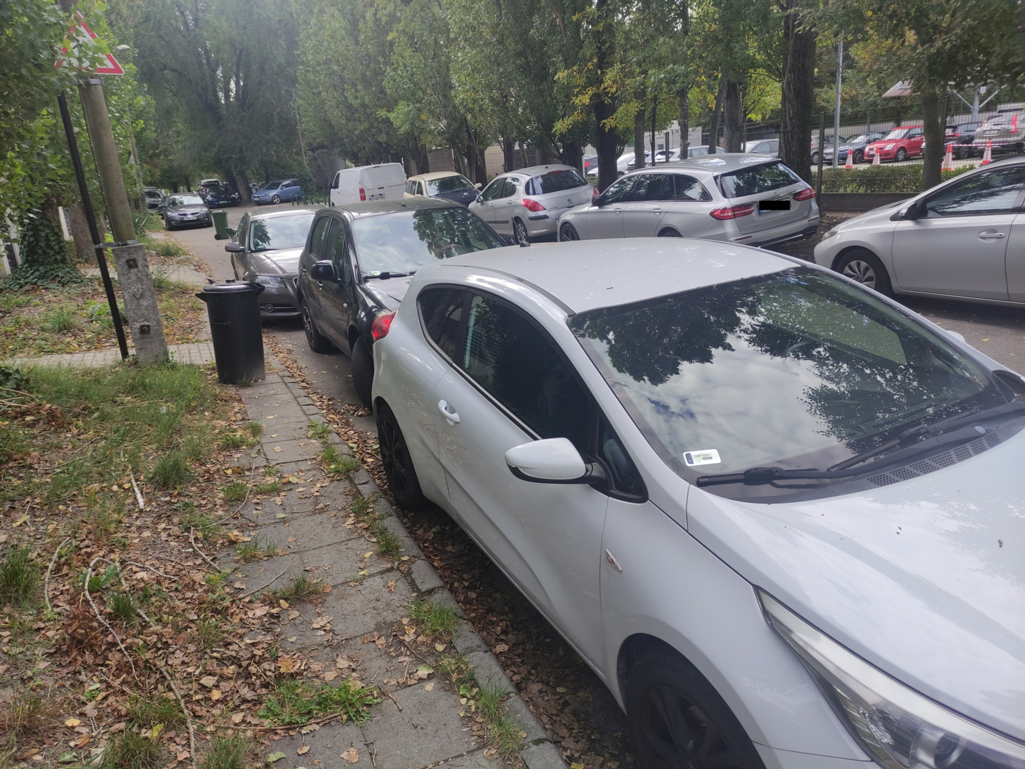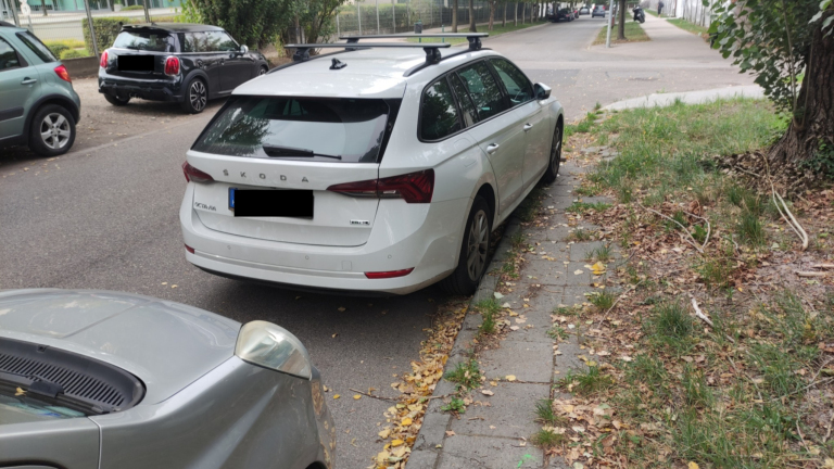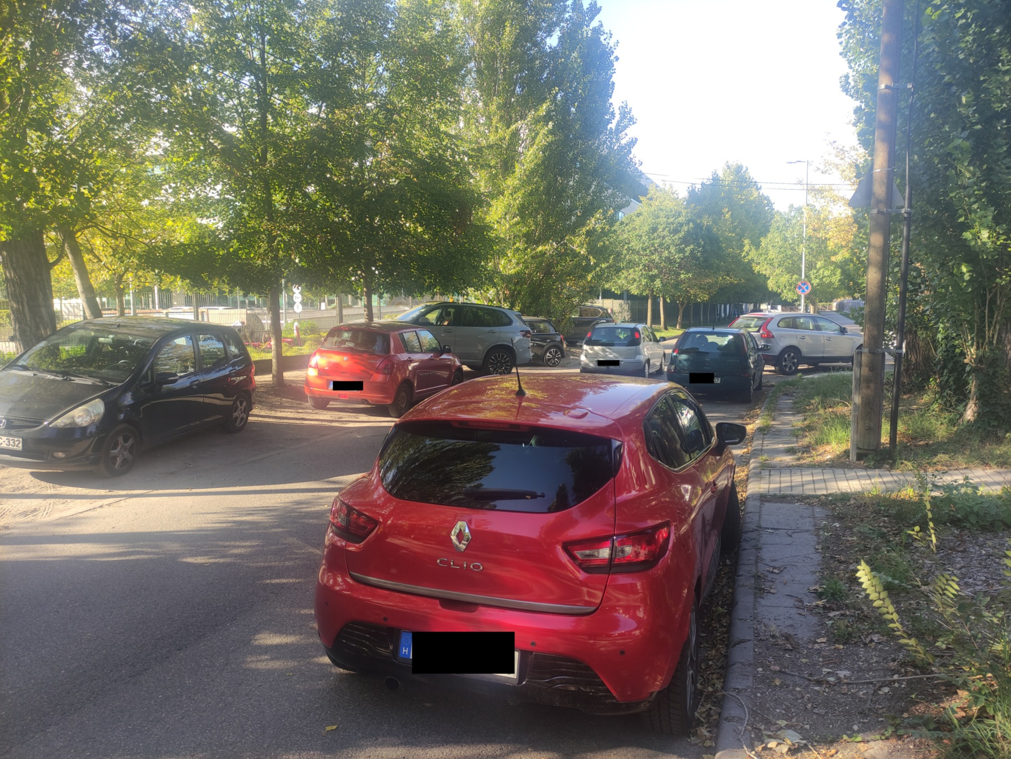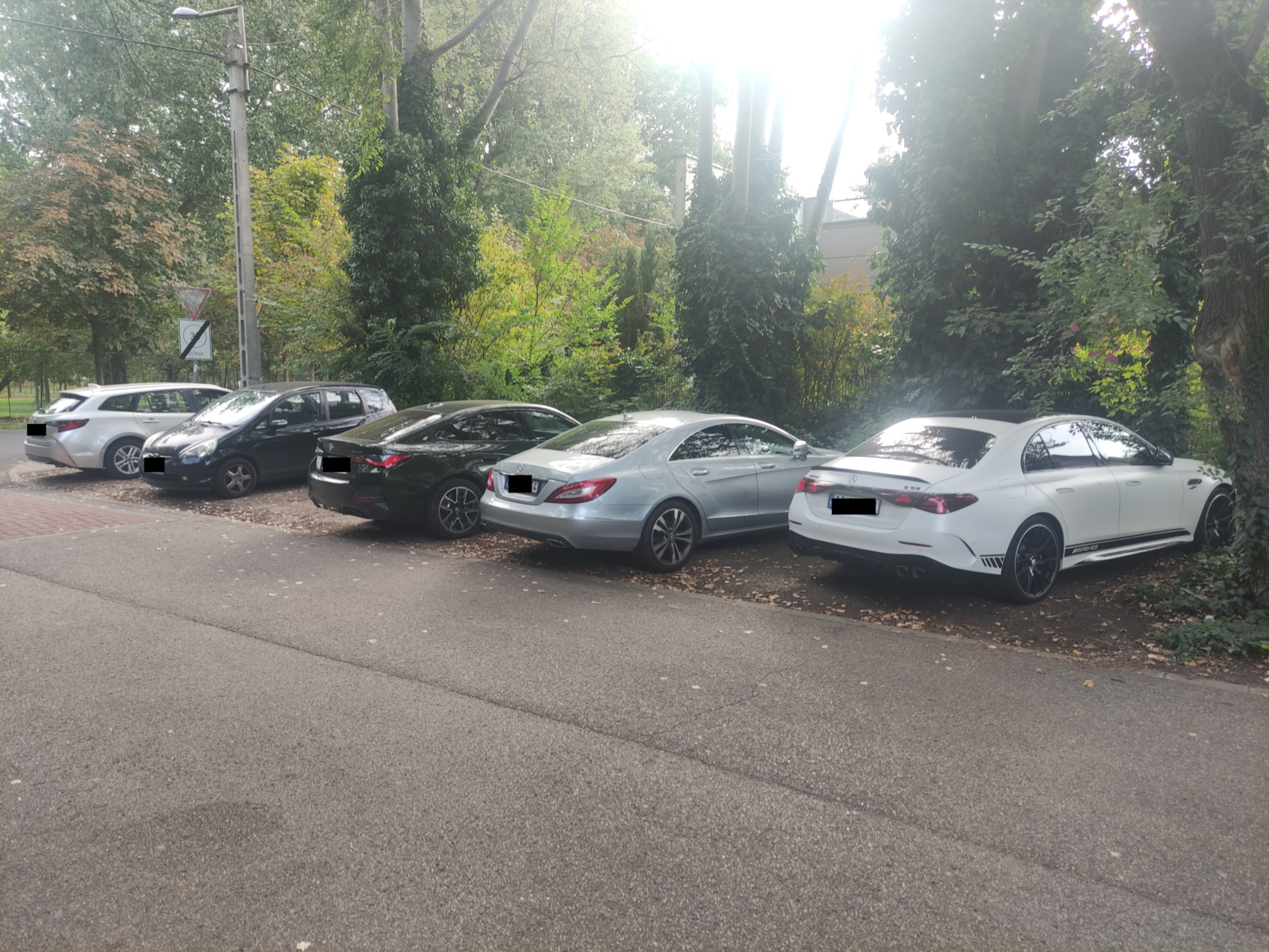 2. A meglévő járdaszakasszal szemben lévő fasor között, illetve helyén több parkolóhely került kialakításra, melyek feltehetően a zöldterületi parkolás tilalmába ütköznek. (1, 2, 5, 6, 8, 10 kép)