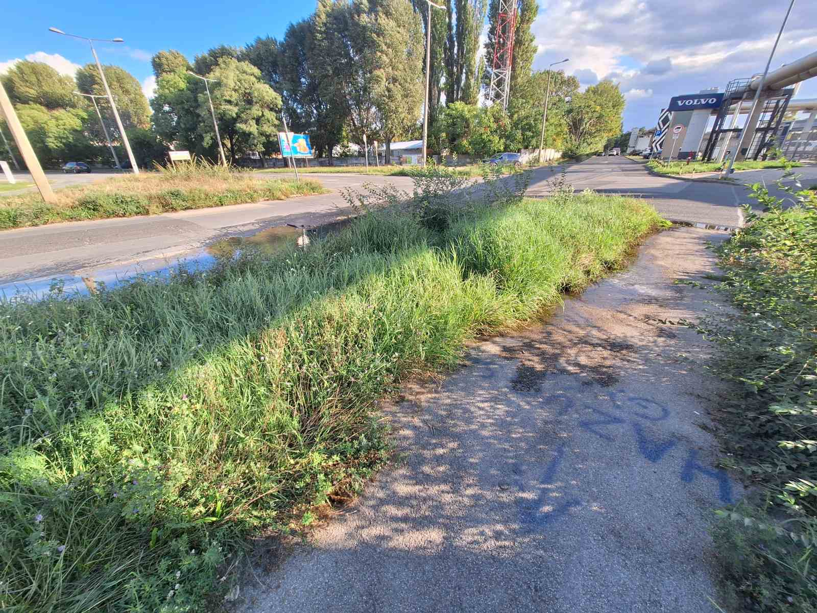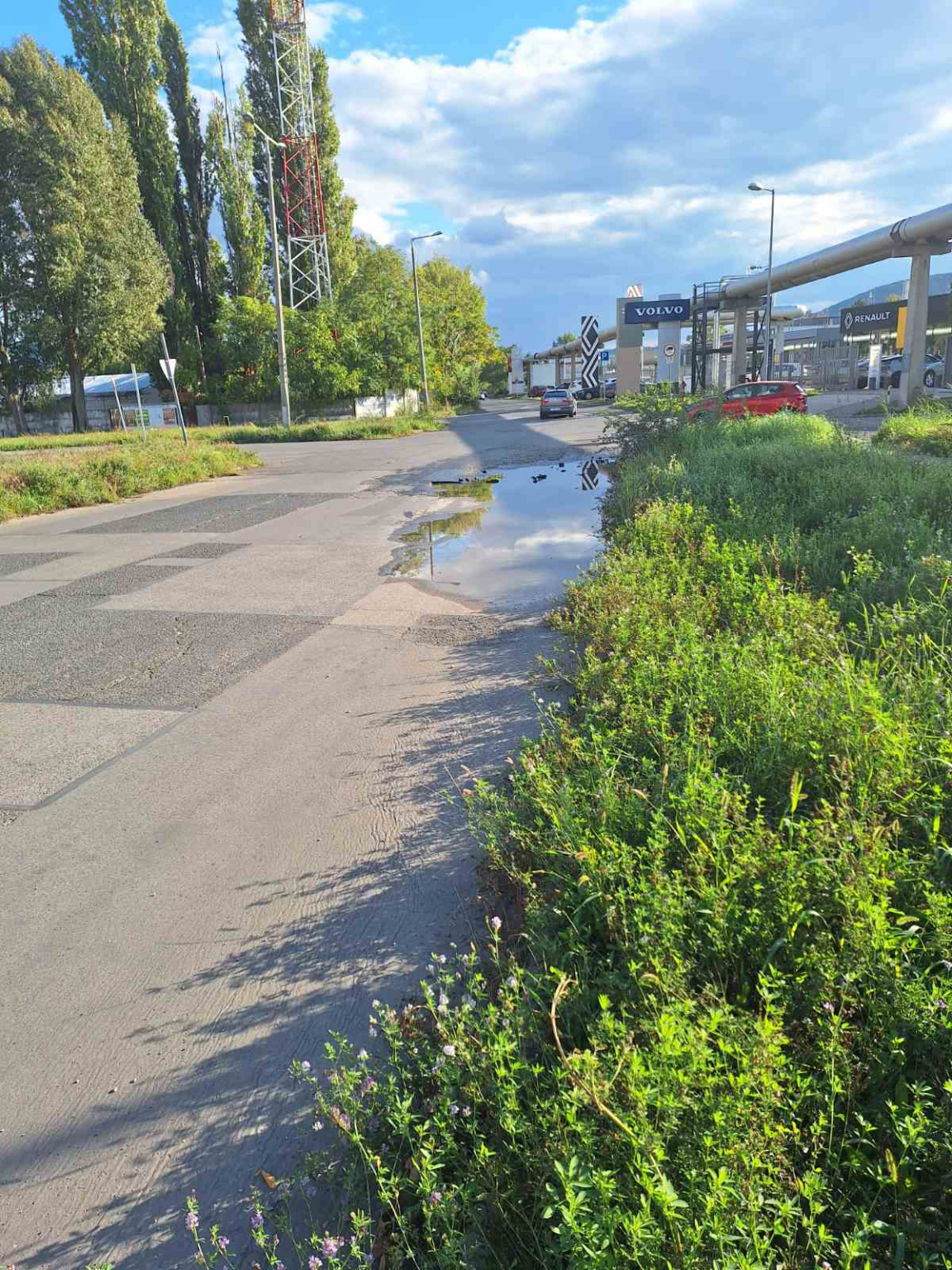 A 3. kerület Kunigunda - Szőlőkert utca sarkán van egy nagy zöldellő terület, ami előtt az úttesten nagyobb tócsa van. A víz külső részén az aszfalt már fel is töredezett. Szinte biztos, h valamiféle csőtörés van ott, mert az a rész vízben áll már régóta.
