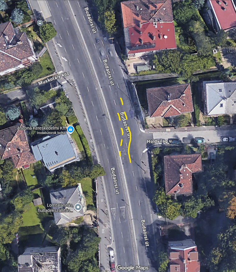 Naponta járok autóval a Budaörsi úton, ami rendszeresen be szokott dugulni a Villányi út és a Nagyszőlősi út között a befelé vezető oldalon. Ennek egyik oka egy félrevezető felfestés a Holdvilág utcánál, ahol az út 2-ről 3 sávossá bővül.