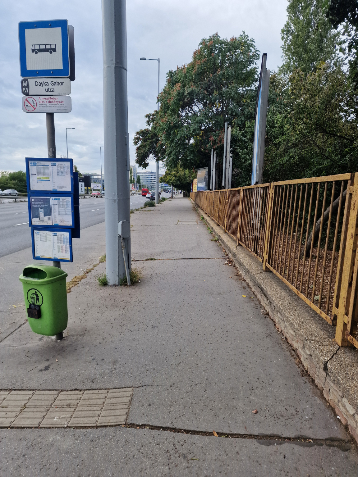 A Budaörsi út - Dayka Gábor utca kereszteződésénél, a Dayka Gábor utca BKK buszmegállónál szeretném kérni a járdahibák javítását.