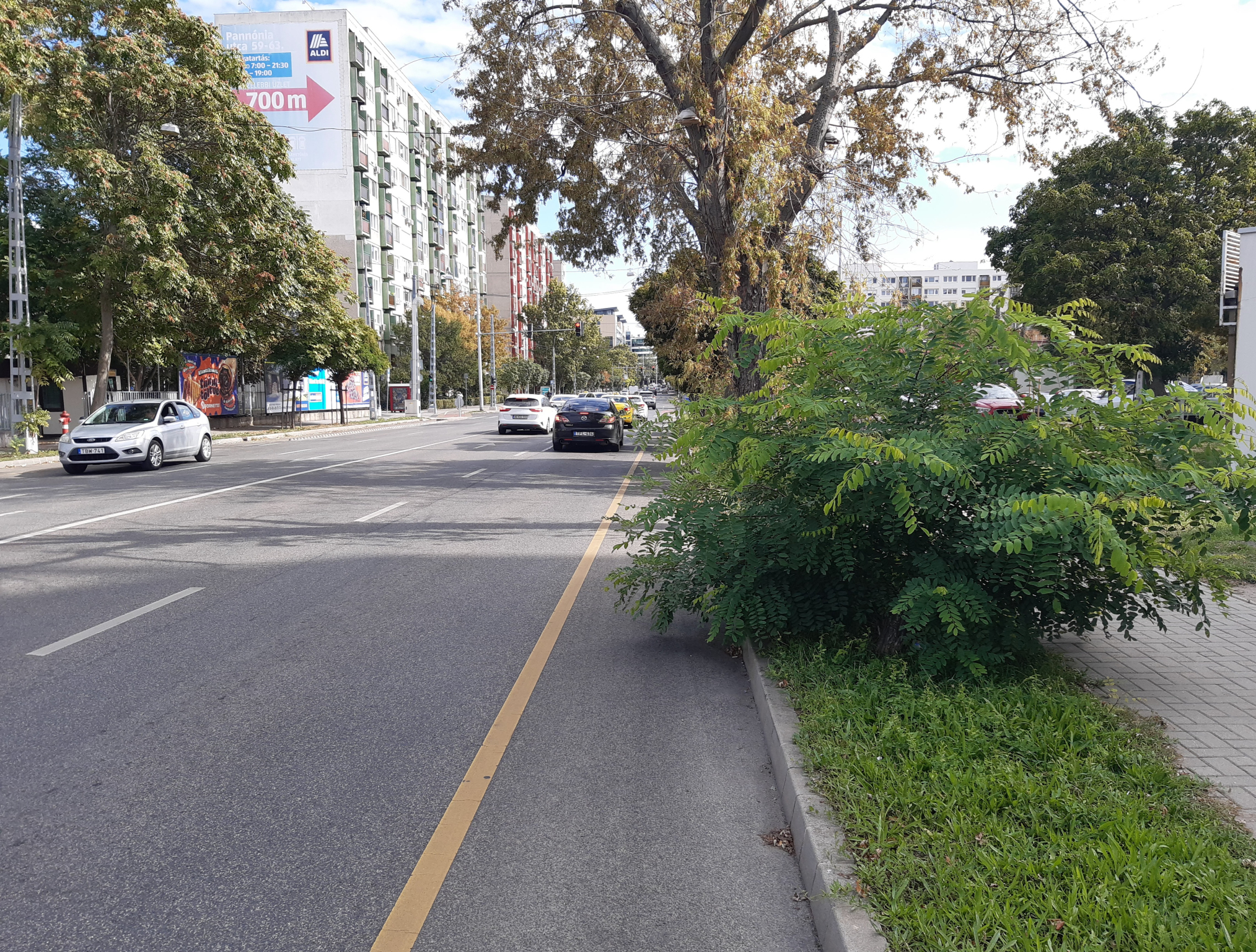 Kerékpársávra benyúló bokor