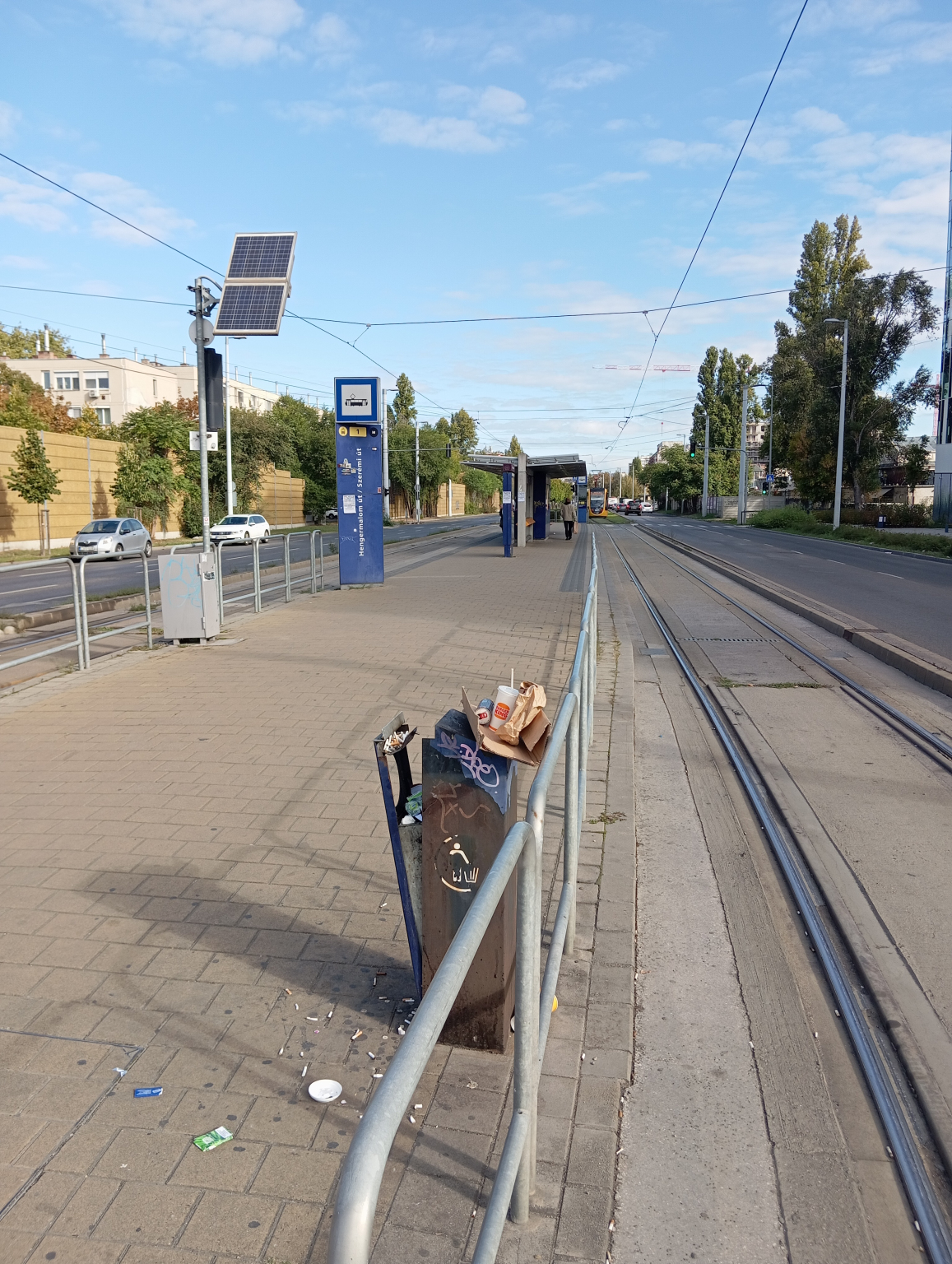 Kérem az illetékest, hogy fessék/fóliázzák/cseréljék a villamosmegállóban lévő szemetest!