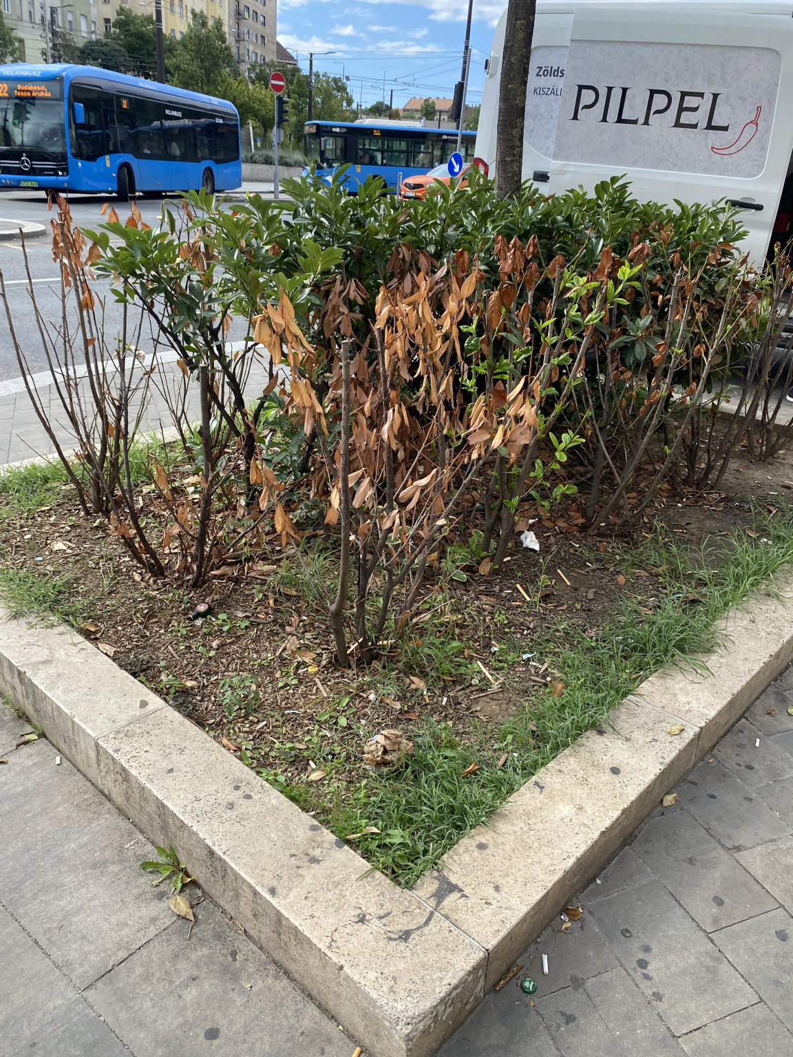 Széll Kálmán téren az idén tavasszal az elpusztult növények helyére ültetett új növények sajnos szintén elpusztultak. Kérem, hogy ültessenek helyettük újakat. Ugyanakkor ezen aligha lehet csodálkozni, hiszen a virágágyások között folyamatosan felhalmozódik a szemét, és szennyezik a területet. Az embernek az a benyomása, hogy nemcsak a szemetelés következetes szankcionálása hiányzik, hanem bármiféle átgondolt koncepció is, amely valóban visszaszorítaná ezt a jelenséget.