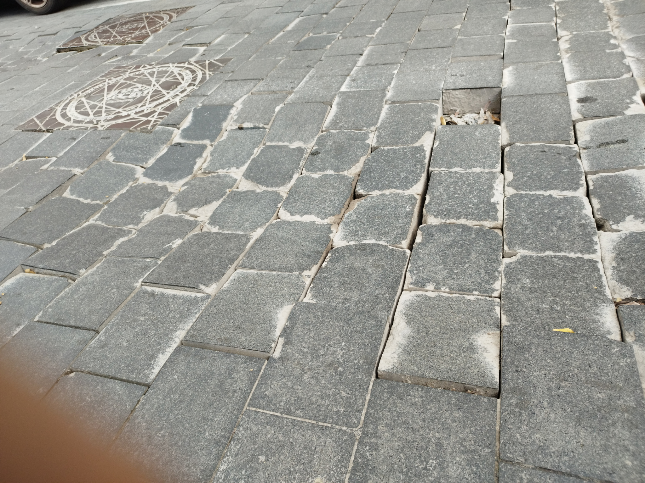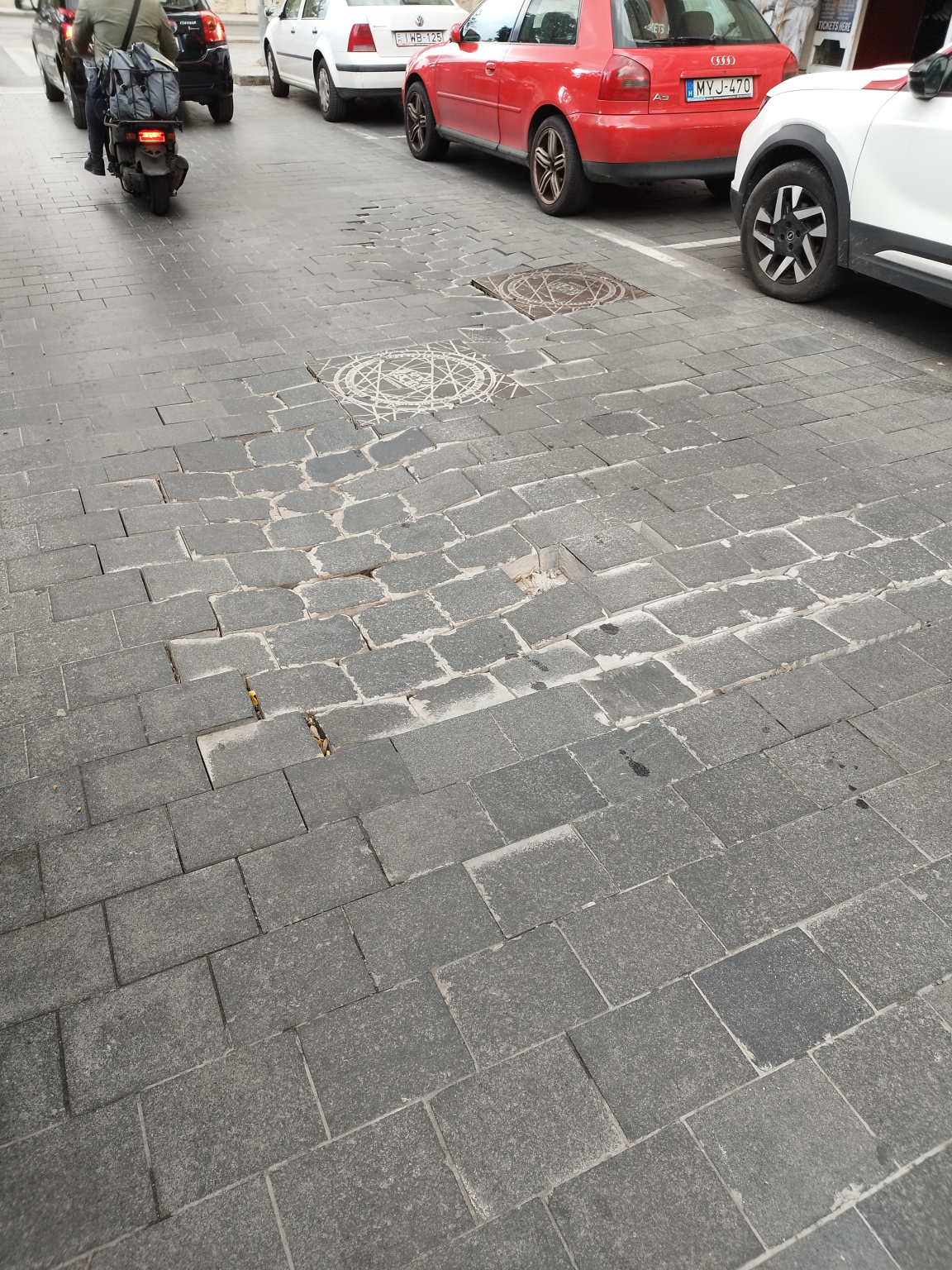 Budapest, V Március 15. tér 1-3 cím előtti útburkolat díszburkolat kockakő több helyen megsűlyedt, töredezett. Autóval, motorkerékpárral, kerékpárral a burkolaton haladva instabil, a kövek mozognak a járművek alatt, tovább töredeznek. Szeretném , ha a Főváros / kerületi közterület fenntartó kijavítaná/kijavíttatná az útburkolat fent leírt hibáját, a közlekedés biztonsága illetve az útburkolat állagának megőrzése/javítása érdekében.