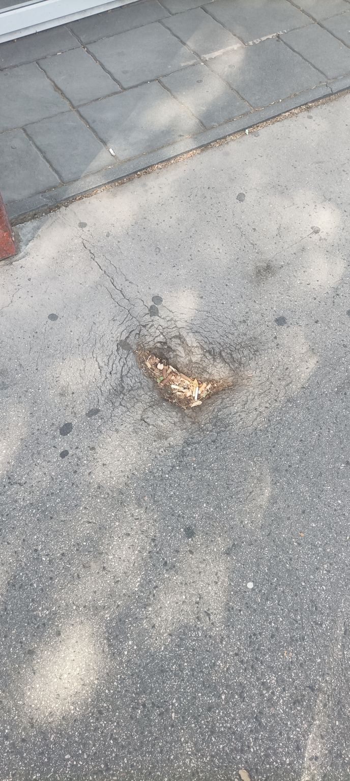 Belementem a kis, de mély kátyúba a járdán és megrándult a bokám meg a karom, amin kapaszkodtam, a térdemet meghorzsoltam. Kicsi a kátyú és könnyen lehet akár kavicsokkal betömni, hogy ne legyen balesetveszélyes.