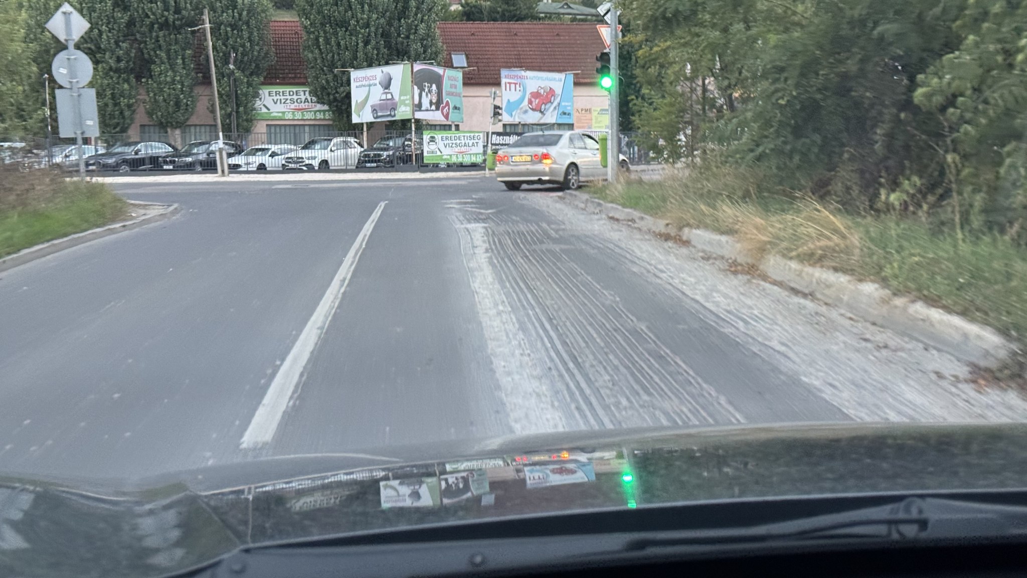 Az úttestre ömlött beton miatt balesetveszélyes az útfelület
