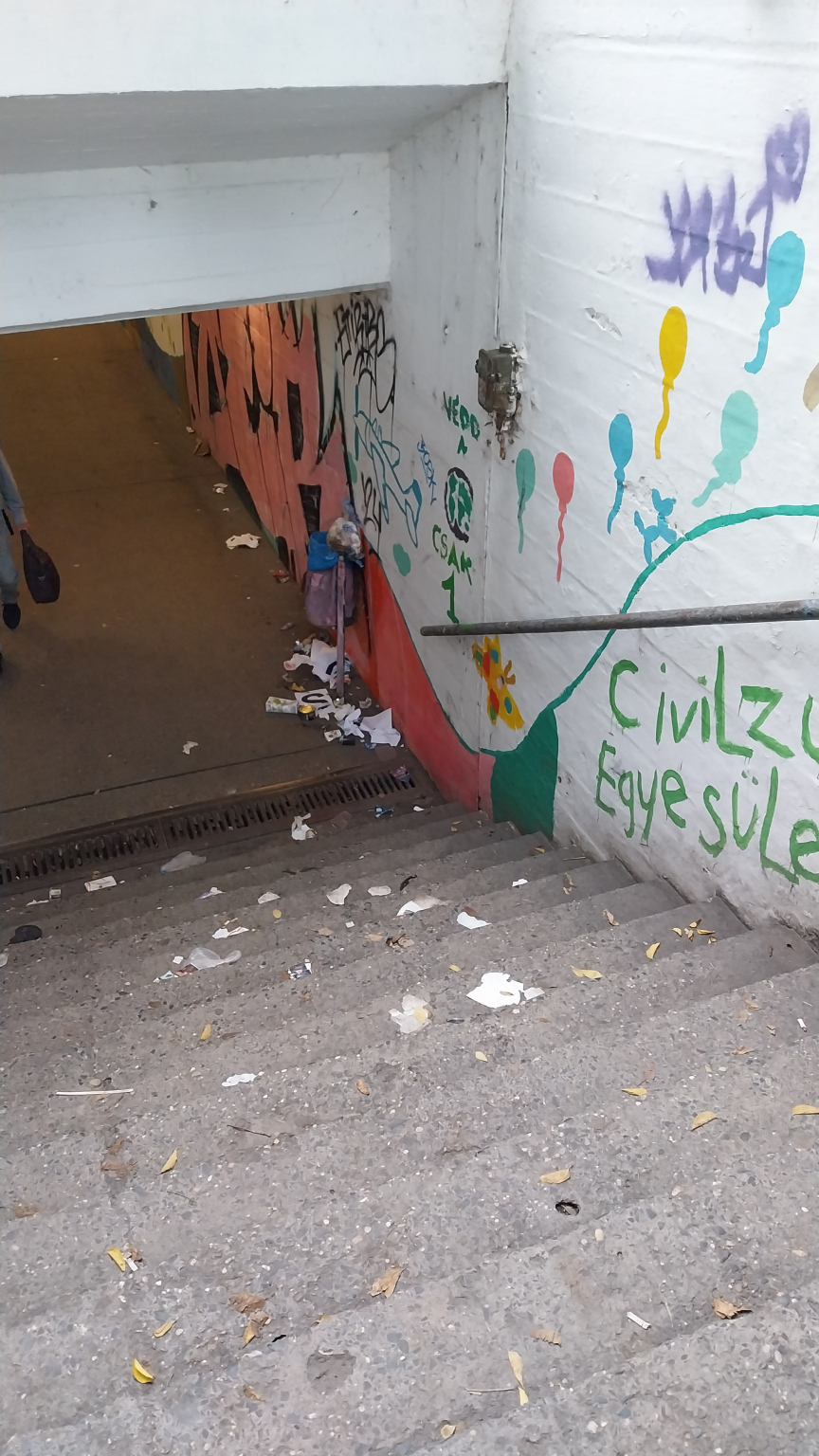 A Kacsóh Pongrác útnál lévő aluljáróban és környékén több hajléktalan fordul meg, sajnos a rendszeres takarítás ellenére rövid idő alatt újra felgyűlik a szemét. A MÁV igyeksz...